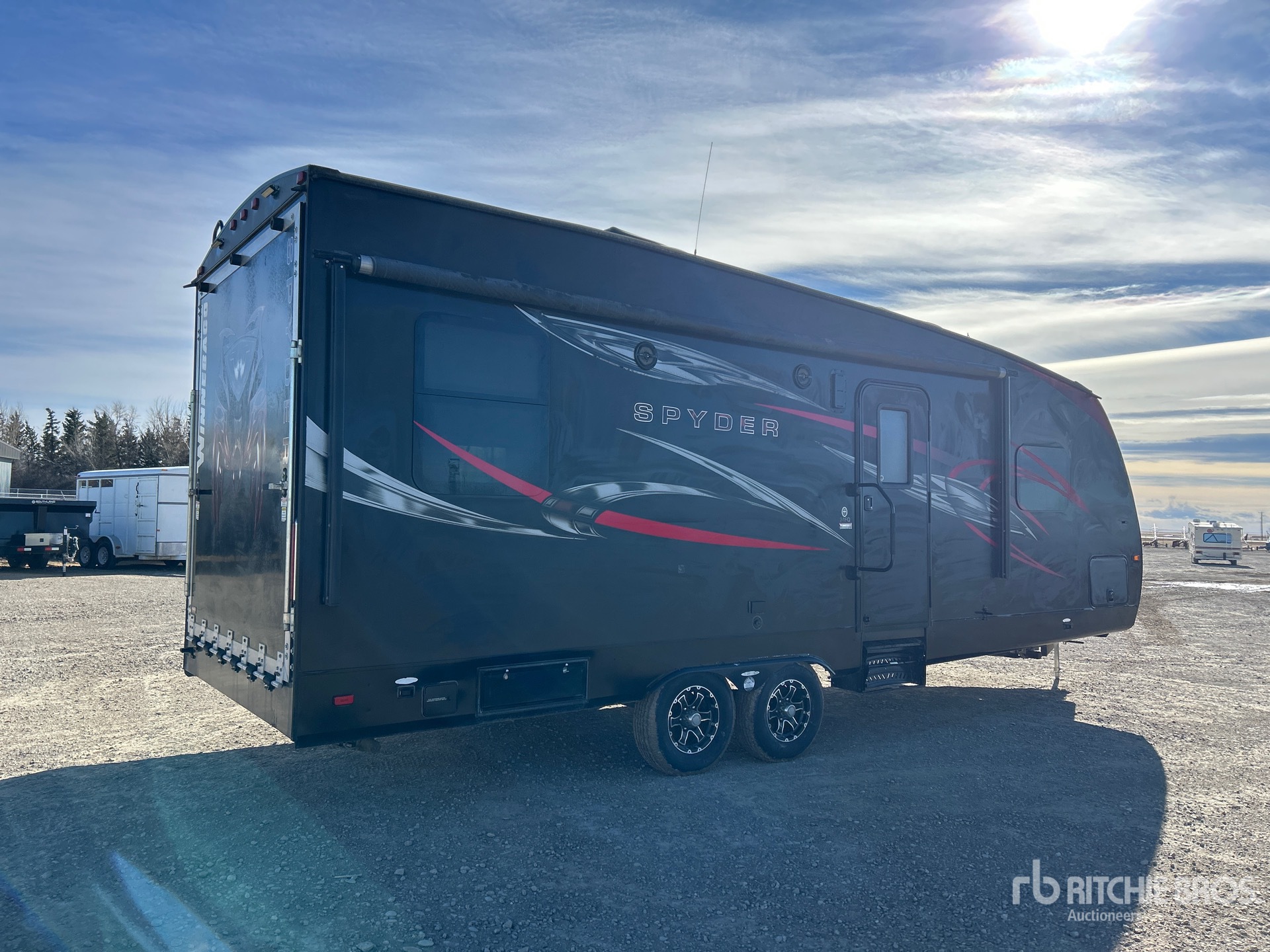 Sleeps 6 People, Onan RV QG 400 Generator w/ 71 hrs, Bumper Pull, Spring Suspension, Electric Brakes, 225/75R15 Tires, Power Bunks, 14 Ft Garage, Fuel Station
