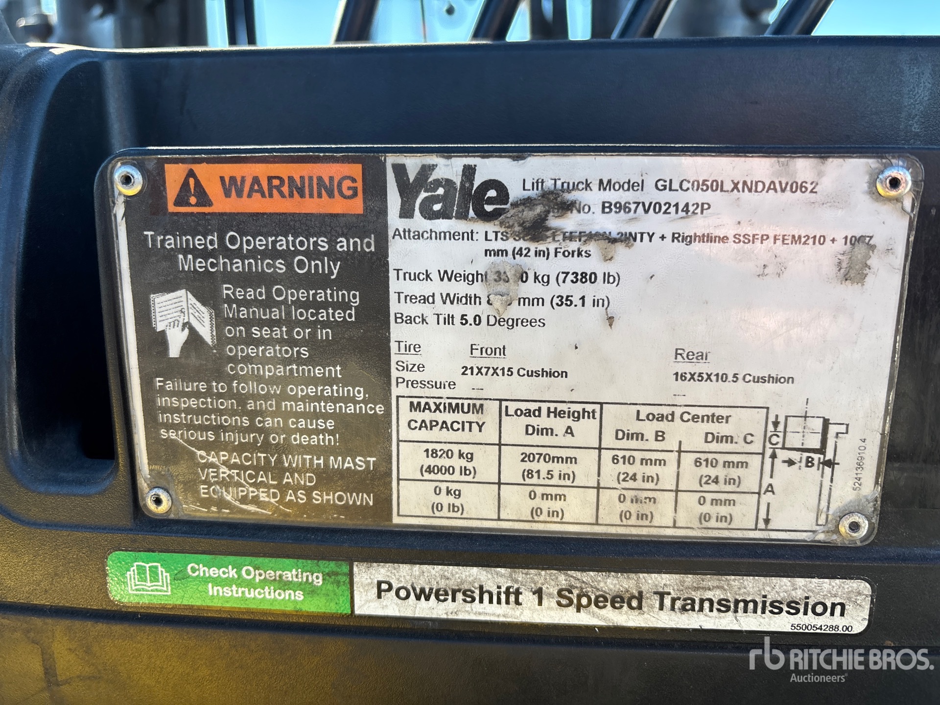 2 Stage Mast, 81 in Max Lift Height, 60 in Lowered Mast Height, 42 in Forks, Side Shift, Fork Positioner, Solid Pneumatic Tires, 2016 US EPA Label, PSI 4 Cylinder 2.4 L LPG Engine