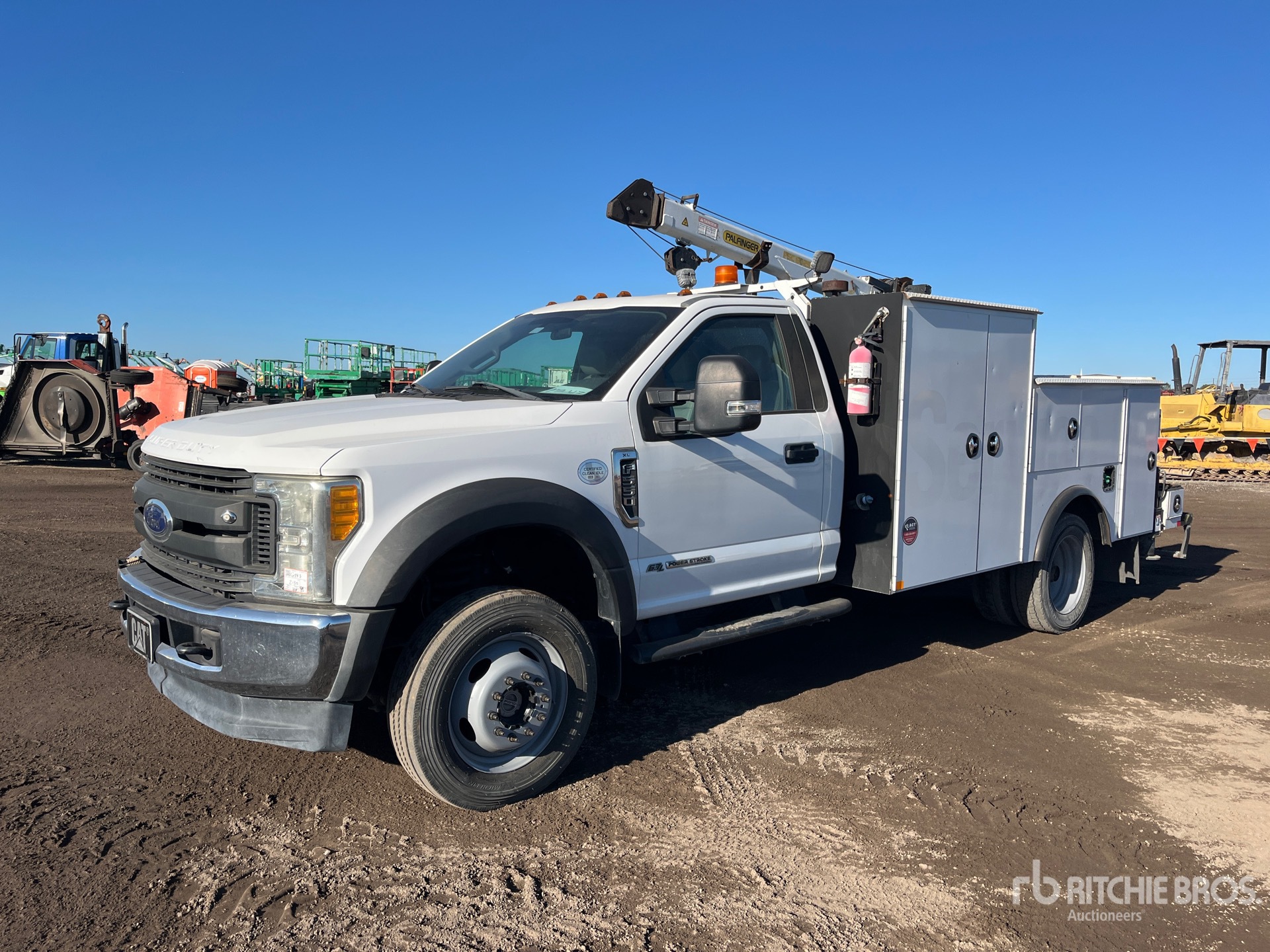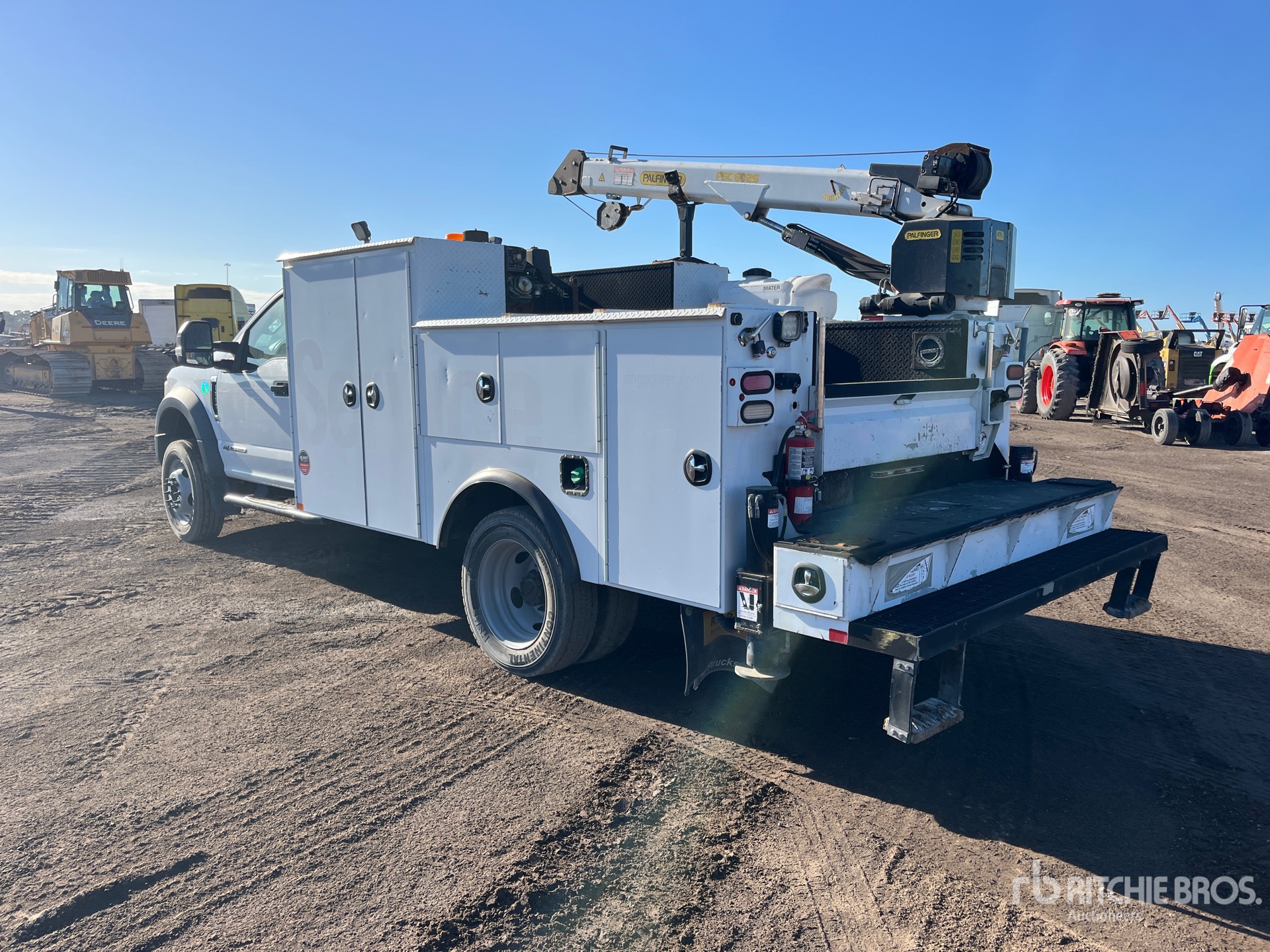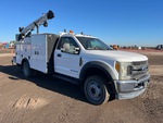 Located in Lane 99 Spot 20, Ford V8 6.7 L Diesel Engine, 2016 US EPA Label, Requires Diesel Exhaust Fluid, 12912 Engine hrs, Automatic Transmission, 7000 lb Front Axle, 14700 lb Rears, 19508 lb GVWR, 225/70R19.5, Spring Suspension, 170 in Wheelbase, PTO, 13 ft Body, Hydraulic Stabilizers, Palfinger 6025 6000 lb 3 Section Hydraulic Crane, Wireless Remote Control, BelAire 3G3HHL 25 cfm Gasoline Air Compressor, Air Hose Reel
