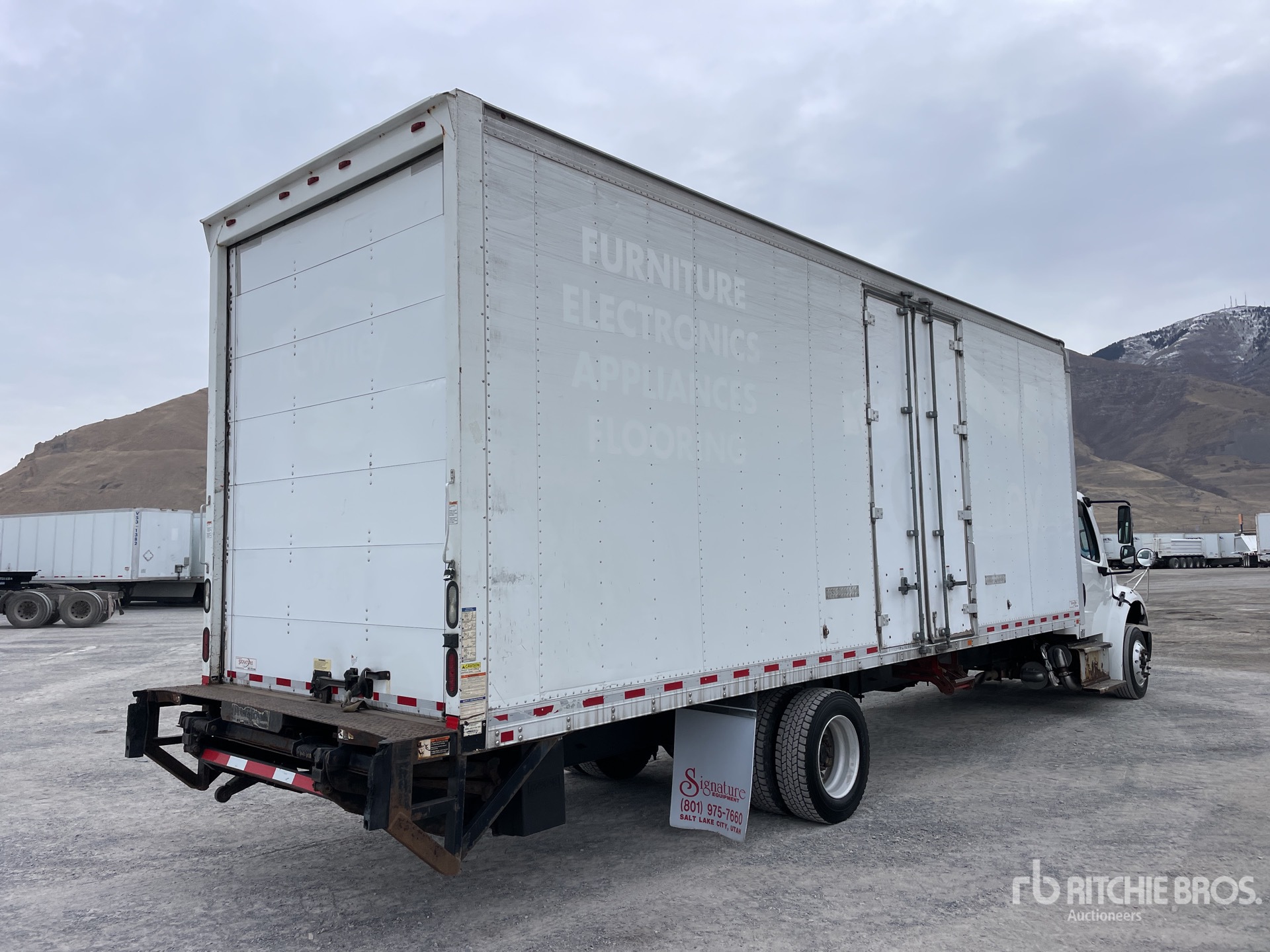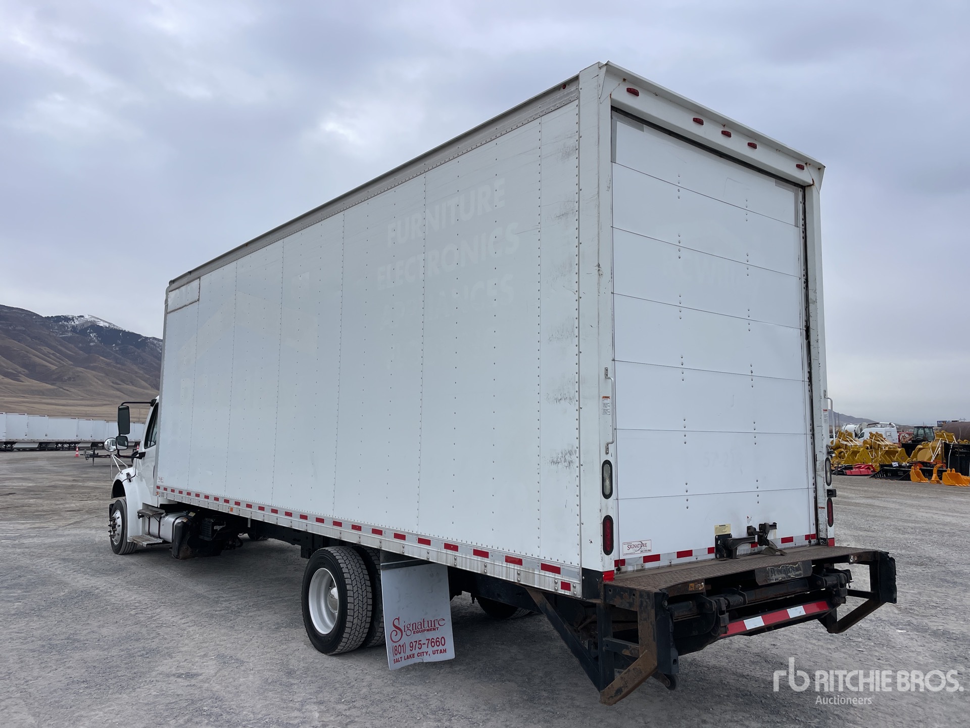 Cummins ISB 6 Cylinder 6.7 L Diesel 220 hp Engine, 2016 US EPA Label, Requires Diesel Exhaust Fluid, 9914 Engine hrs, Allison 2200 Automatic Transmission, 9880 lb Front Axle, 15000 lb Rears, 4.56:1 Axle Ratio, 24880 lb GVWR, 245/70R19.5, Air Ride Suspension, 265 in Wheelbase, Morgan 26 ft x 96 in Wide x 110 in High Body, Curbside Door, Liftgate