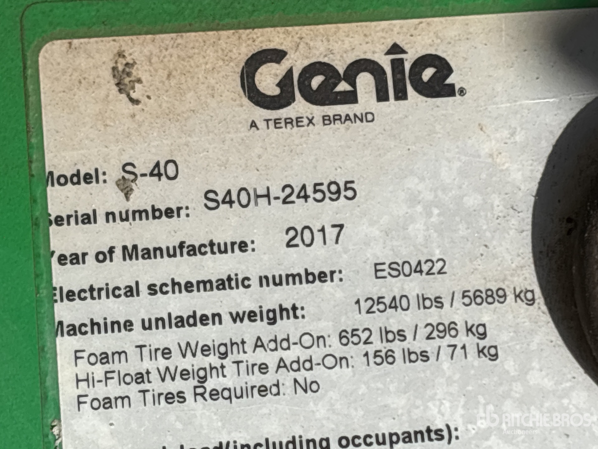 40 ft Max Platform Height, 500 lb Max Weight Capacity, Power to Platform, 2017 US EPA Label, Deutz 4 Cylinder 49 hp 2.9 L Diesel Engine, 33X16.5 Tires