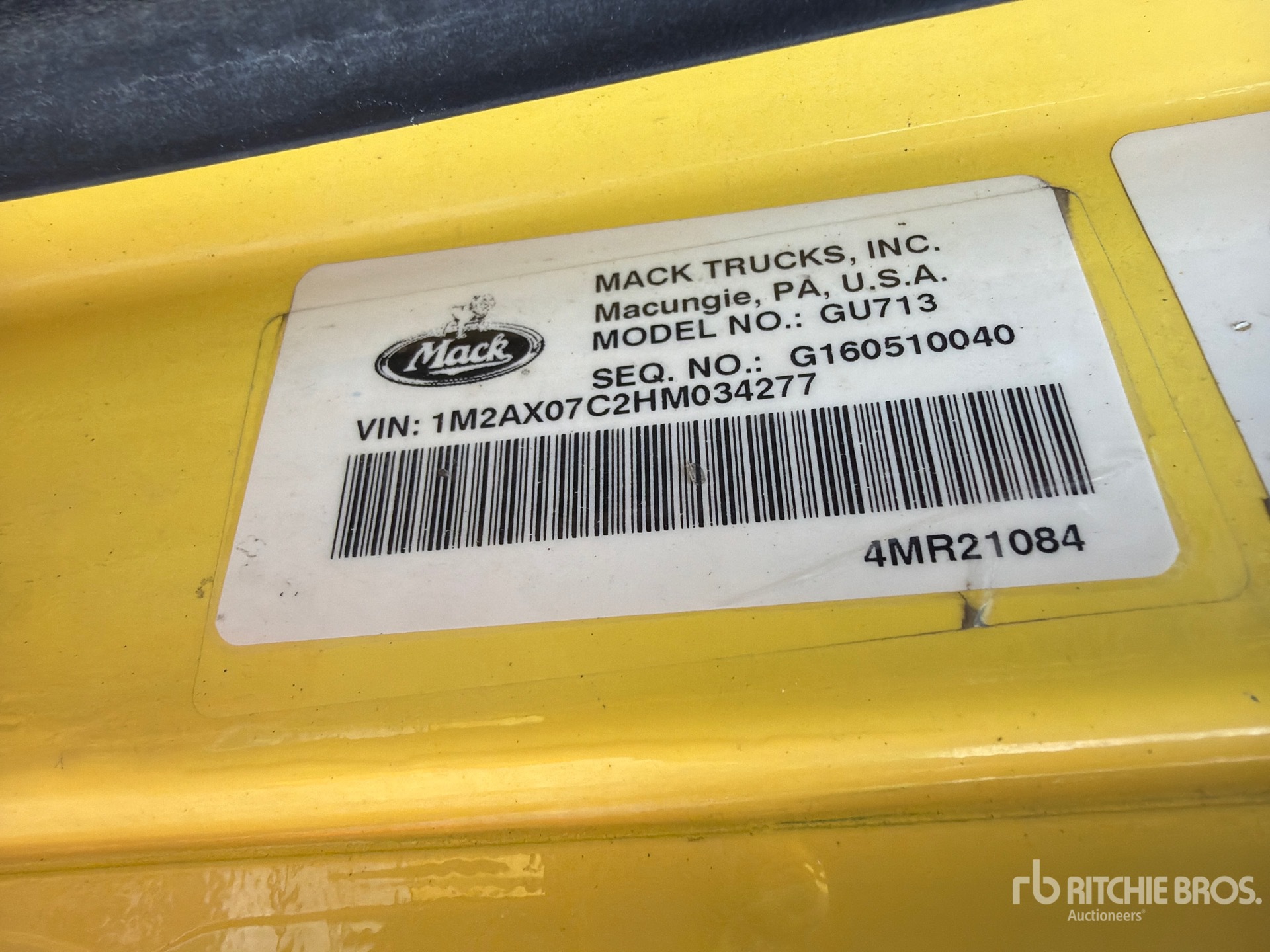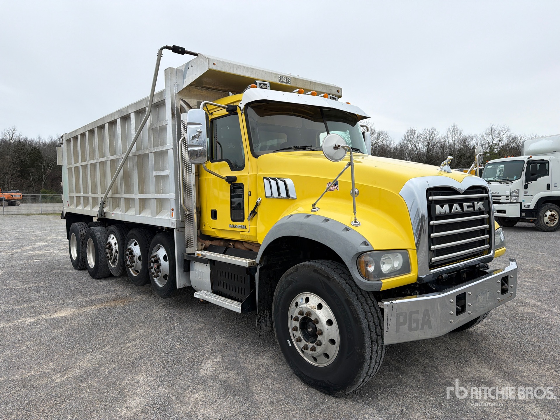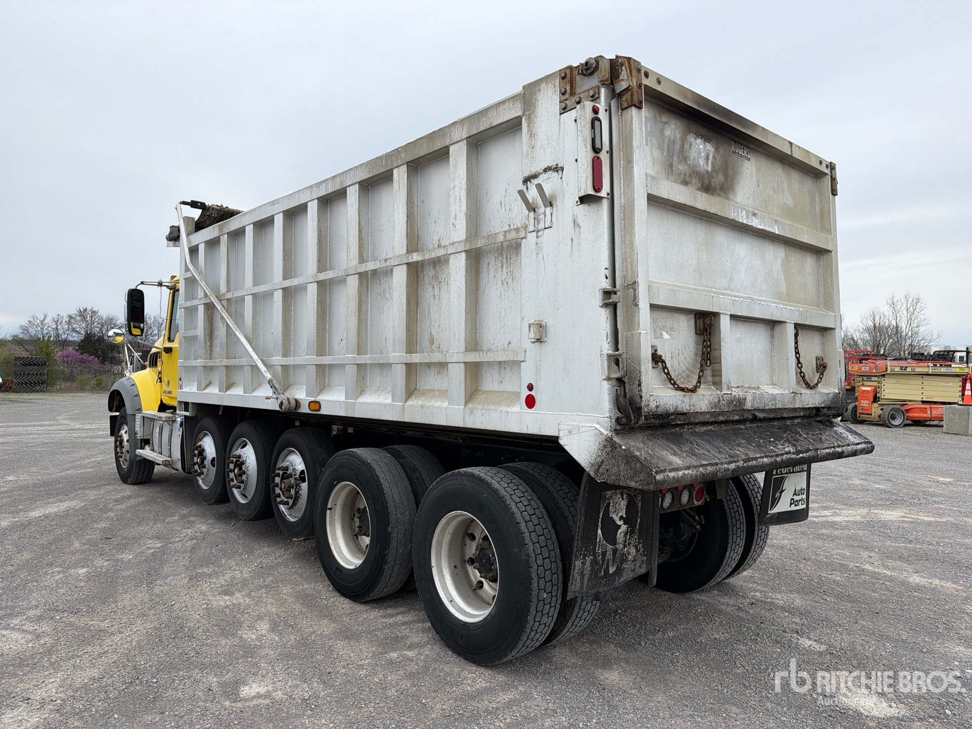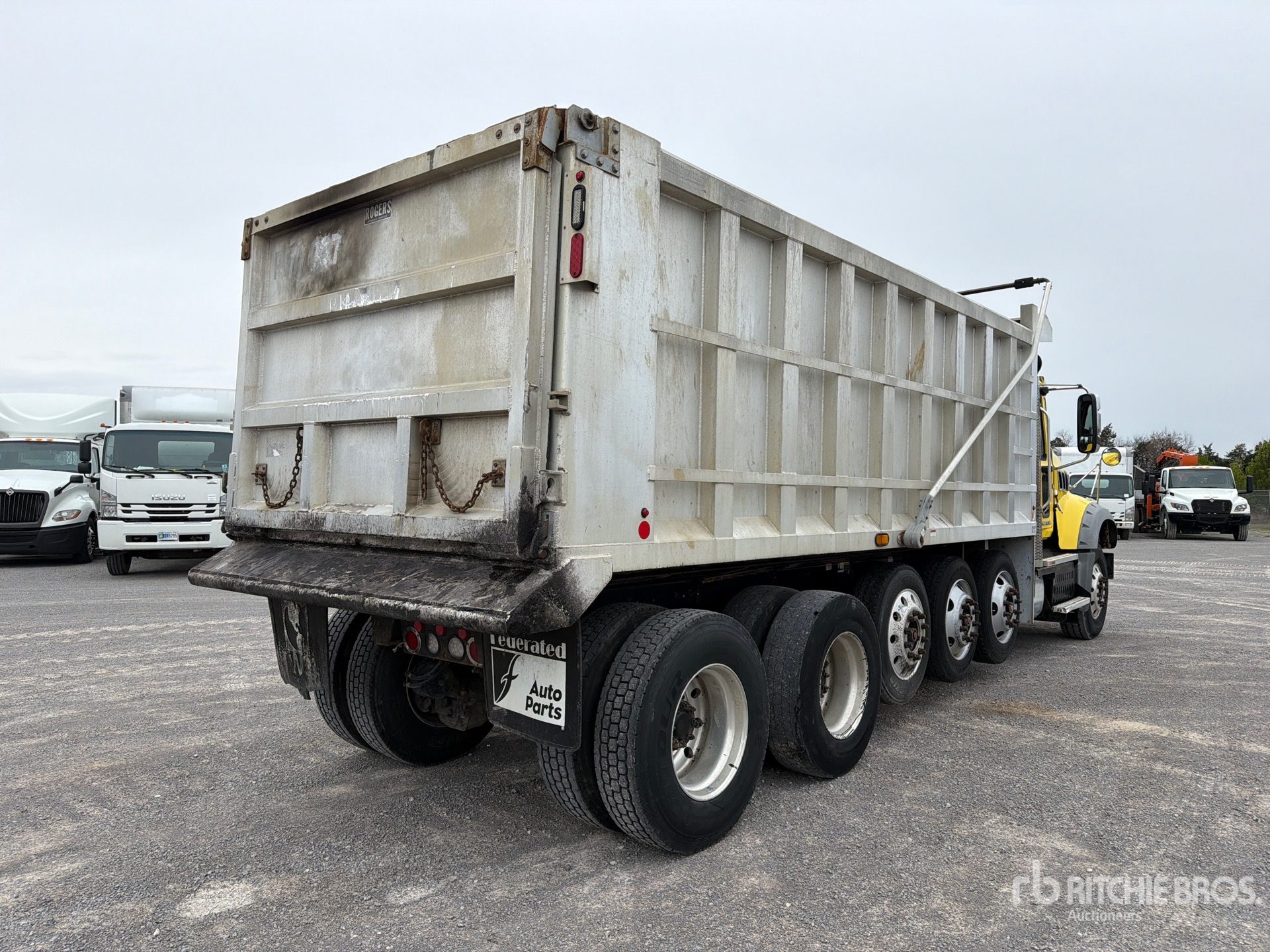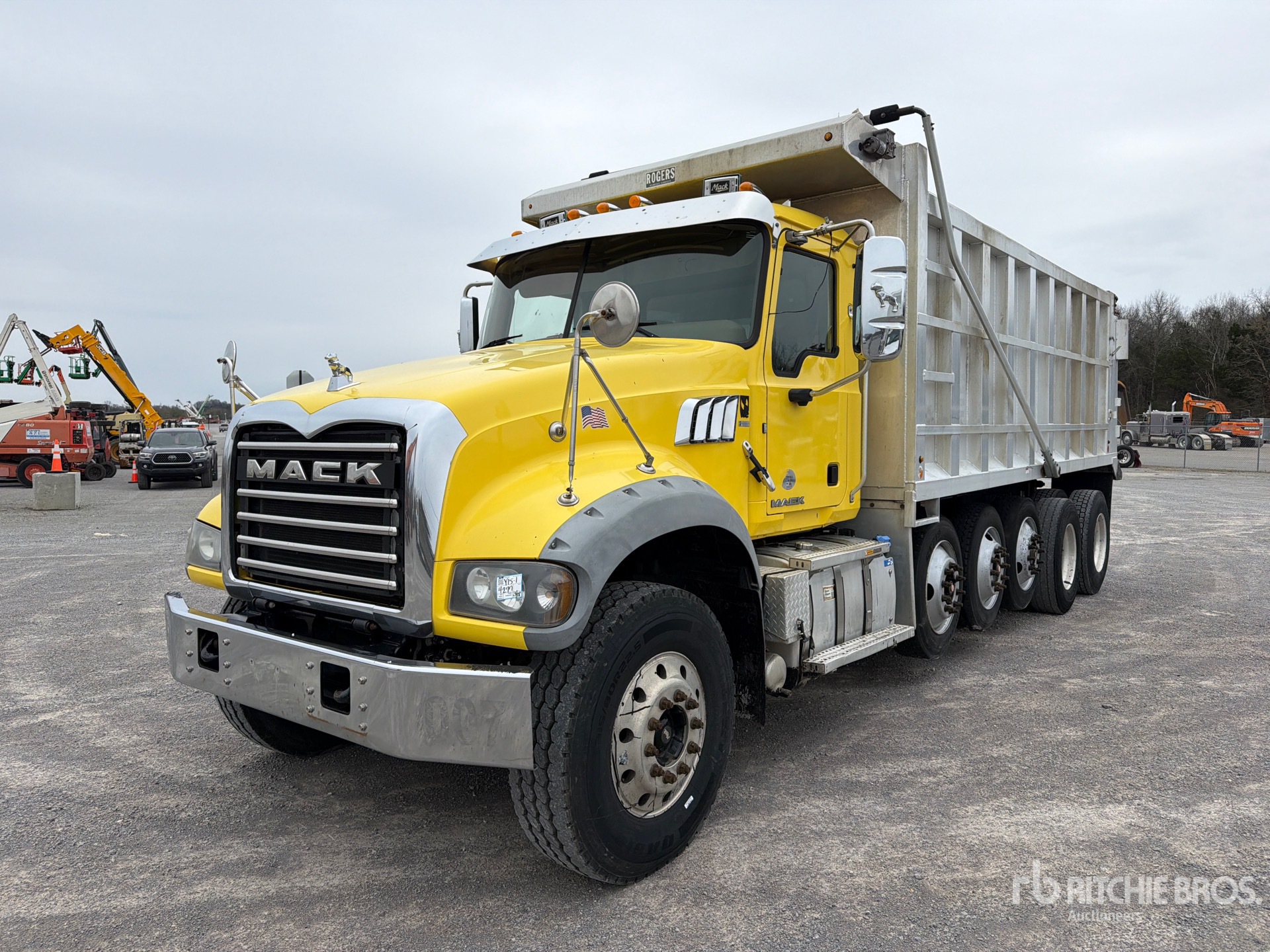 Located in Lane 1 Spot 3, Mack MP8 6 Cylinder 12.8 L Diesel 445 hp Engine, 2016 US EPA Label, Requires Diesel Exhaust Fluid, 15536 Engine hrs, Engine Brake, Allison Automated Transmission, Differential Lock, 20000 lb Front Axle, 46000 lb Rears, 66000 lb GVWR, Aluminum Wheels, 315/80R22.5 Front Tires, 11R22.5 Rear Tires, 3 Steerable Air Lift Pusher Axle, Steerable Air Lift Tag Axle, Dual Steering Boxes, Double Frame, Spring Suspension, 260 in Wheelbase, Hydraulic System, Rogers 19 ft 6 in Long x 5 ft 8 in High Aluminium Body, Electric Roll Tarp