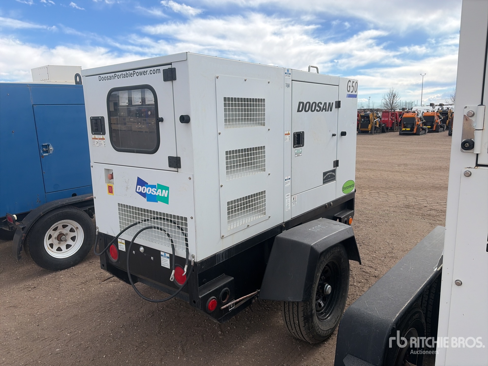 4 Cylinder Diesel Engine, 240 V & 120 V Receptacles, Sound Attenuated, Bottom Mounted Fuel Tank, Ball Hitch Carrier Trailer, Surge Brakes