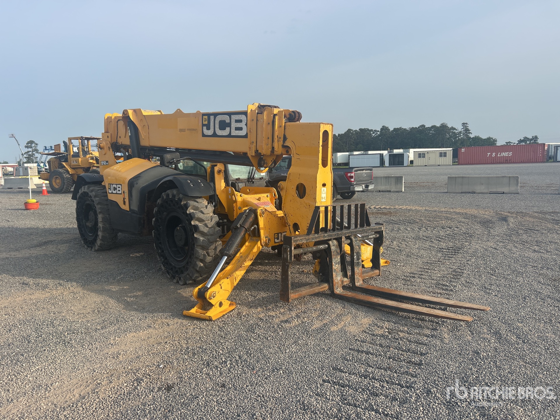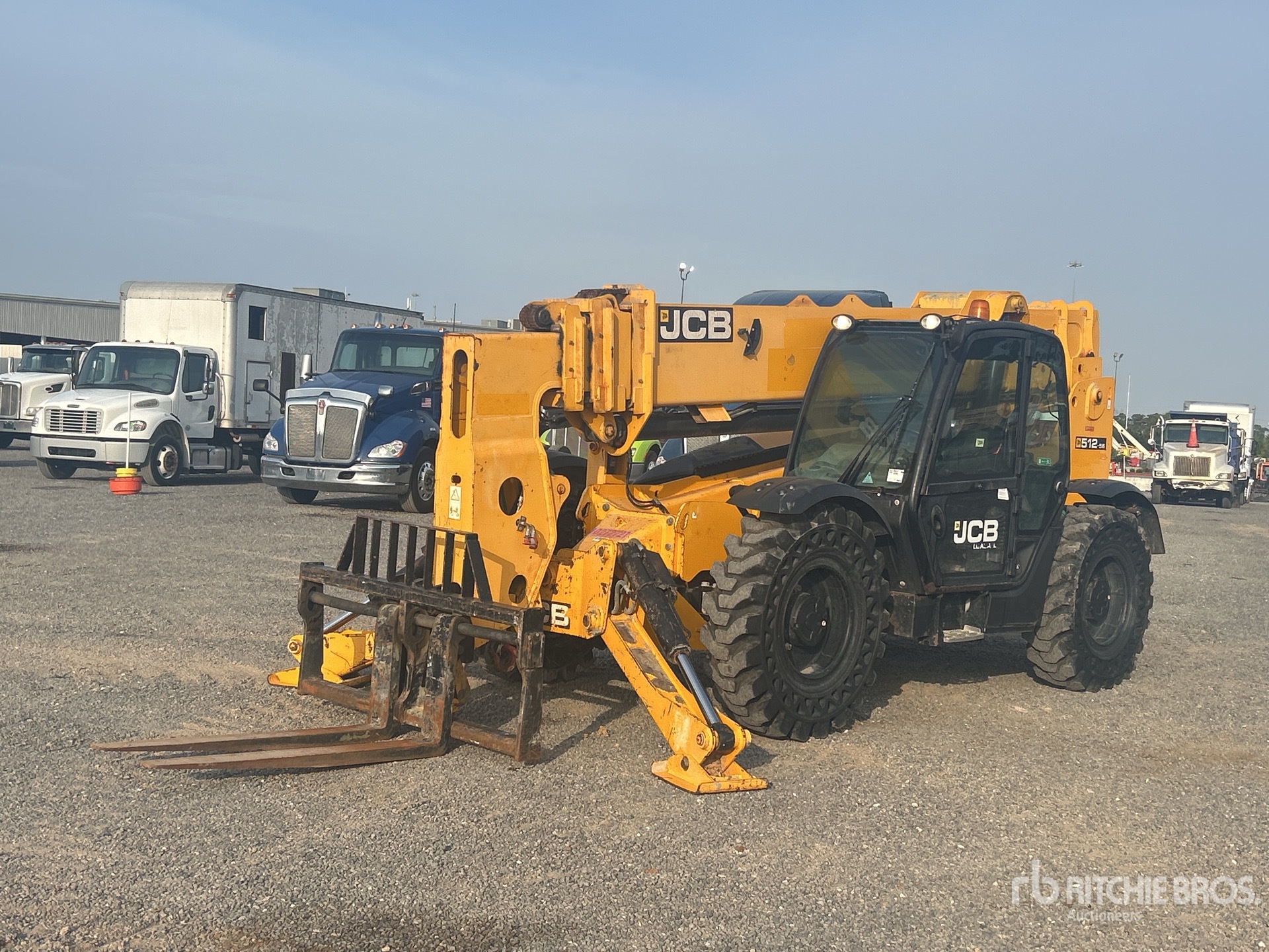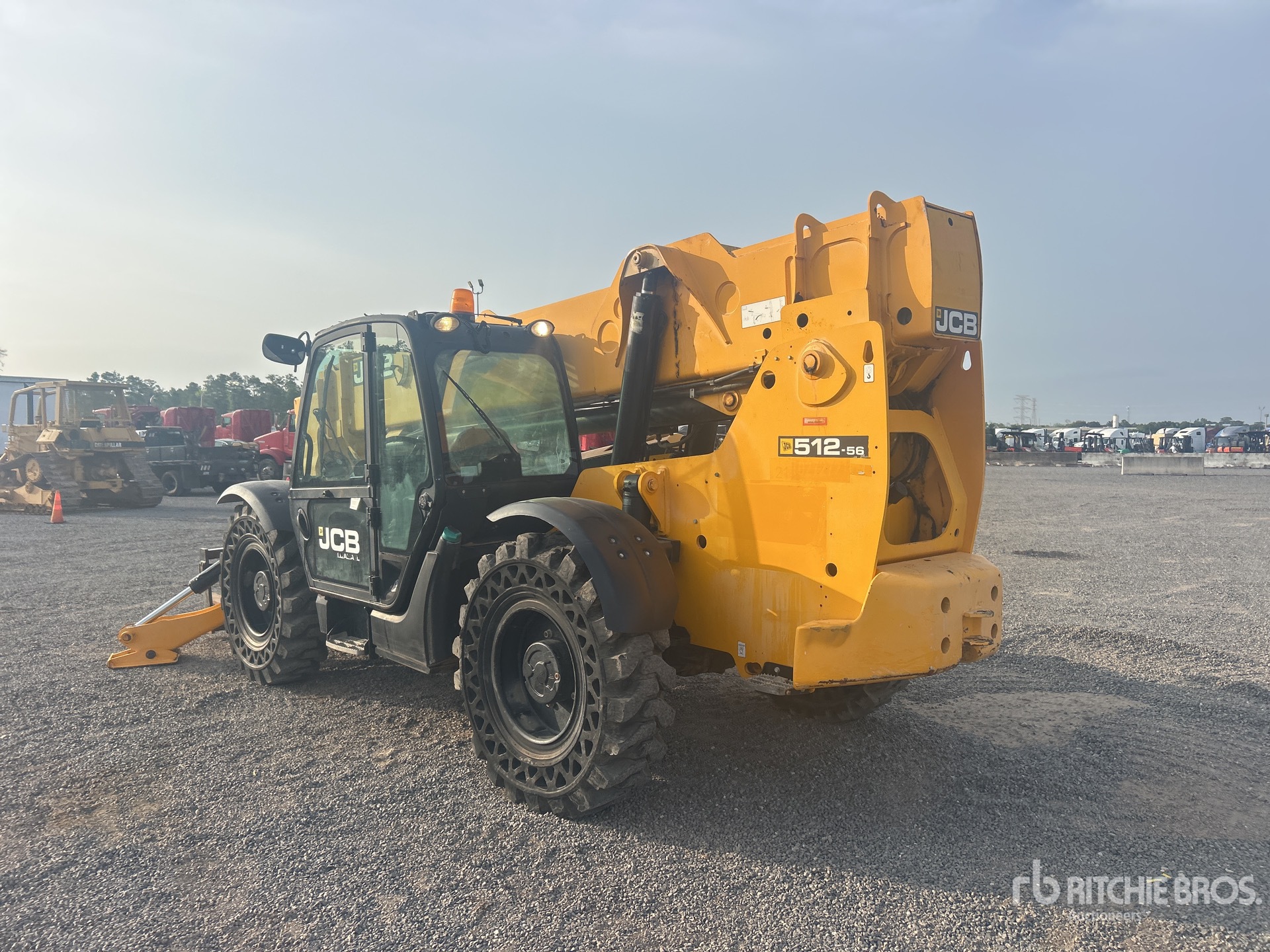 Enclosed Cab, Air Conditioner, 56 ft Max Lift Height, 12000 lb Max Lift Capacity, 60 in Forks, Manual Coupler, Outriggers, Auxiliary Hydraulic Plumbing, 14.00-24 Aperture Tires