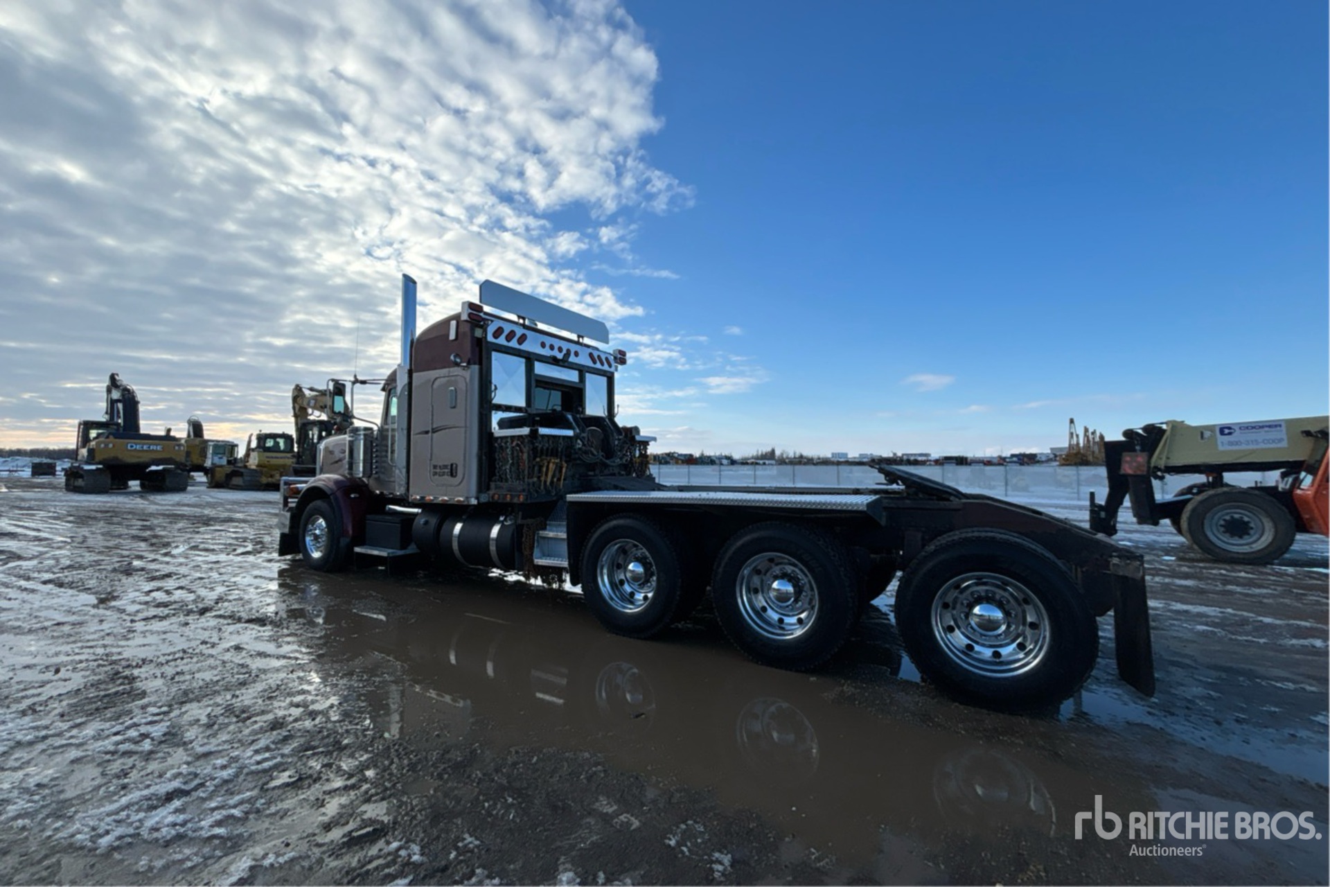 Cummins X15 6 Cylinder 15 L Diesel 605 hp Engine, 2020 US EPA Label, CARB Compliant, Requires Diesel Exhaust Fluid, 4822 Engine hrs, Engine Brake, Eaton Fuller 18-Speed Manual Transmission, Double Differential Locks, 16000 lb Front Axle, 65000 lb Rears, 81000 lb GVWR, Air Ride Cab, 48 in Mid Roof Sleeper Cab, Aluminum Wheels, 385/65R22.5 Front Tires, 11R24.5 Rear Tires, Dual Steering Boxes, Air Ride Suspension, 266 in Wheelbase, PTO, Tail Roll, Ramsey Winch, Complete-Retirement-Dispersal-for-Mur-Cal-Services-Ltd