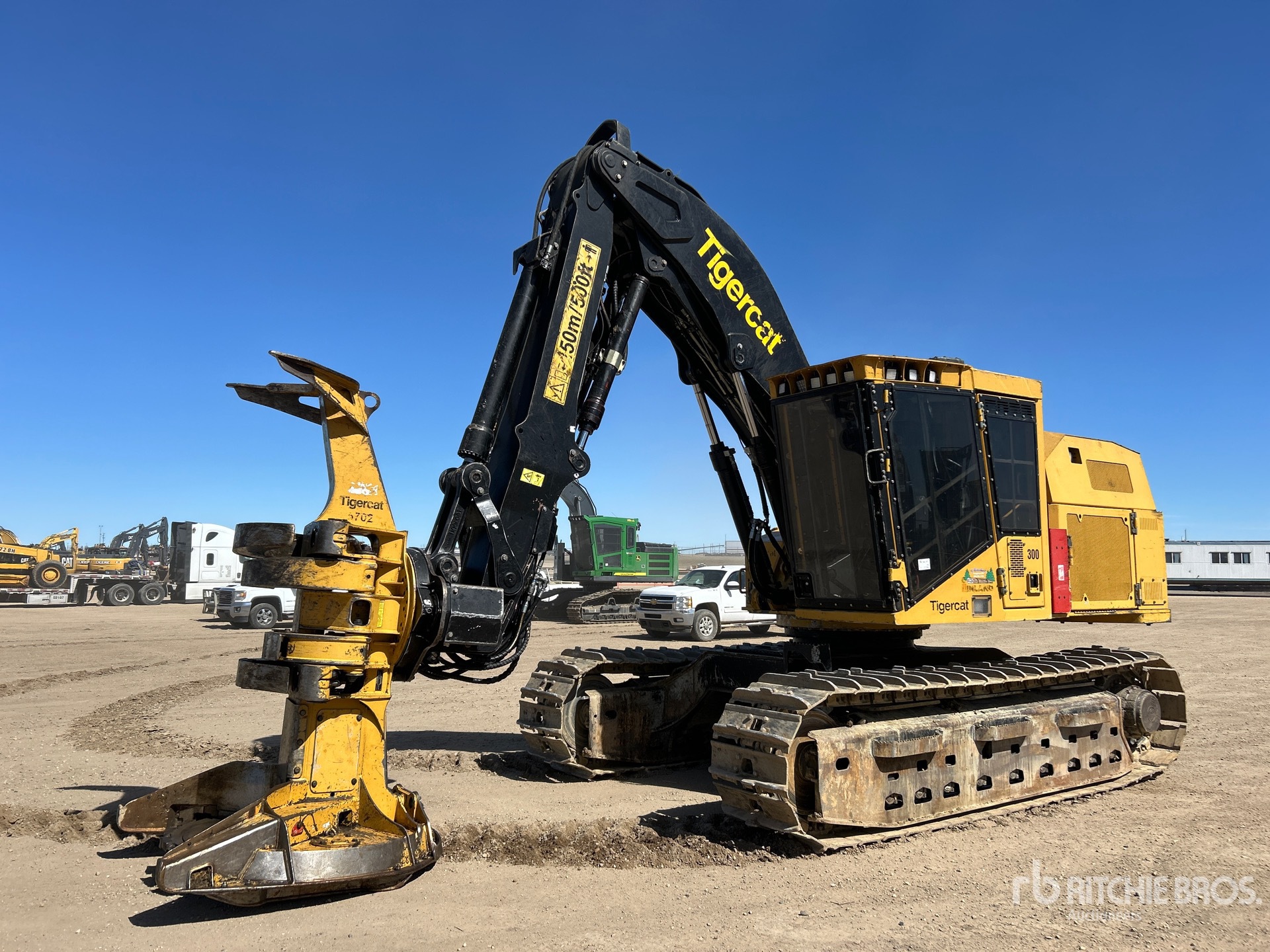 Air Conditioner, Fire Suppression System, Engine Coolant Heater, 28 in Single Grouser Track Shoes, Rock Guards, Tigercat ST5702 24 in Feller Buncher