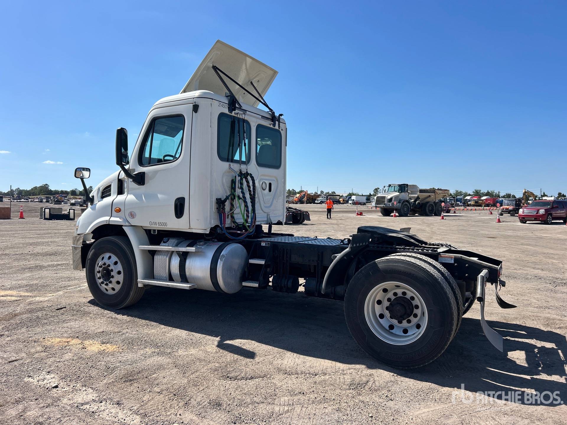 Detroit DD13 450 hp Engine, 2019 US EPA Label, 18509 Engine hrs, Detroit DT12-1650-OH1-8 12-Speed Automated Transmission, 12000 lb Front Axle, 23000 lb Rears, 35000 lb GVWR, Engine Brake, 160 in Wheelbase, Air Suspension, Aluminum Wheels, 11R22.5, Air Sliding 5th Wheel, Dual Fuel Tanks