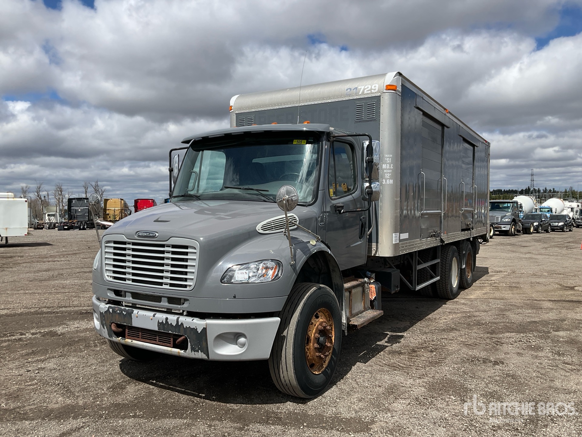 Cummins ISL 6 Cylinder Diesel 300 hp Engine, Engine Coolant Heater, 10178 Engine hrs, Allison 3000 Automatic Transmission, Differential Lock, 14600 lb Front Axle, 40000 lb Rears, 5.86:1 Axle Ratio, 54600 lb GVWR, 295/80R22.5 Front Tires, 11R22.5 Rear Tires, Airliner Air Ride Suspension, 257 in Wheelbase, Multivans 24 ft x 102 in Wide x 84 in High Body, Liftgate