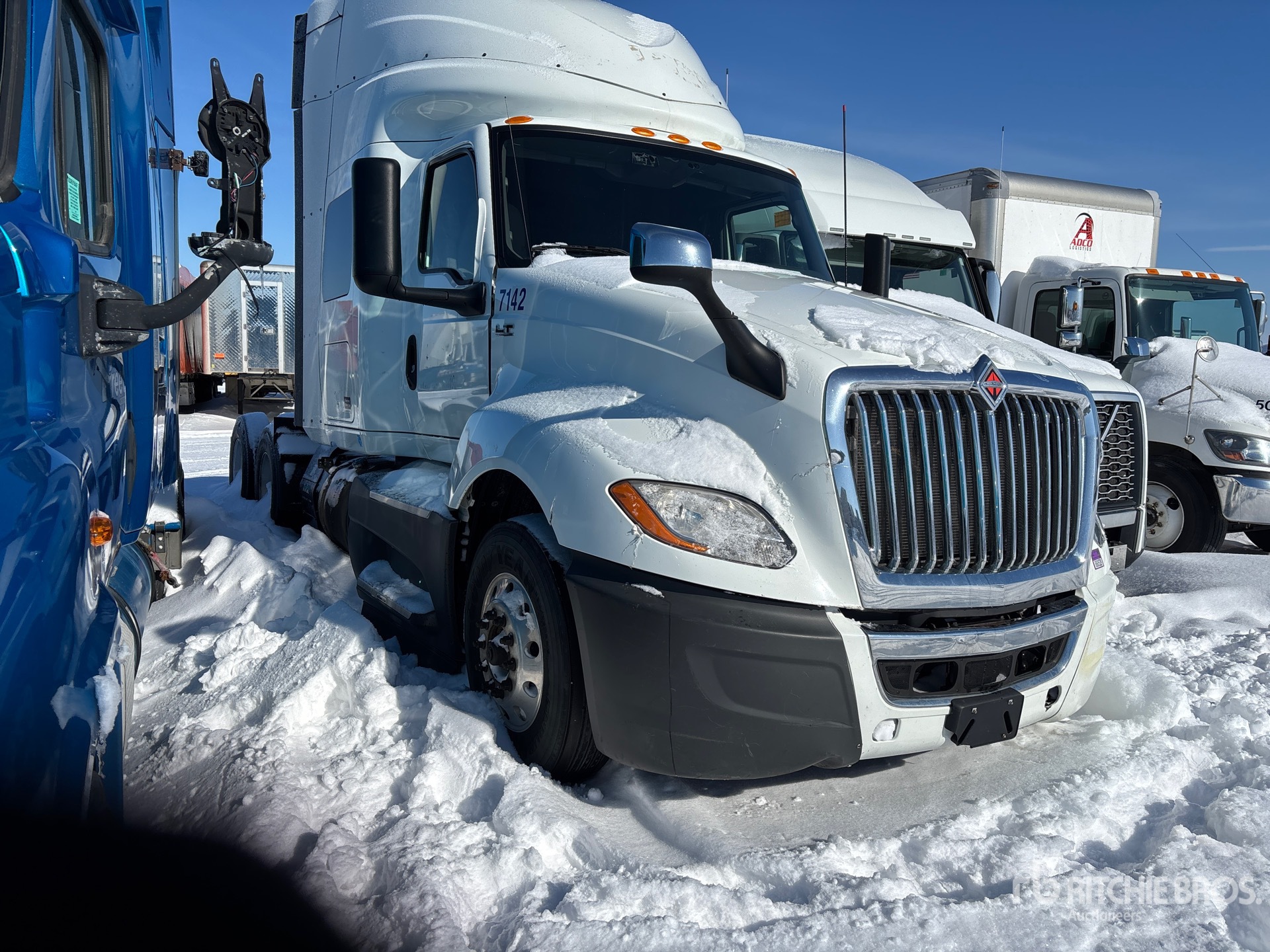 Located in Lane 19 Spot 15, International A26 450 hp Engine, 2018 US EPA Label, 11249 Engine hrs, Automatic Transmission, 13200 lb Front Axle, 40000 lb Rears, 53200 lb GVWR, Engine Brake, 56 in High Rise Sleeper Cab, Thermo King Sleeper Air Conditioner, 219 in Wheelbase, Air Suspension, Aluminum Wheels, 295/75R22.5 Front Tires, Mid Passenger Side Tyre-275/80R22.5. Rest Same As Front Rear Tires, Air Sliding 5th Wheel, Dual Fuel Tanks