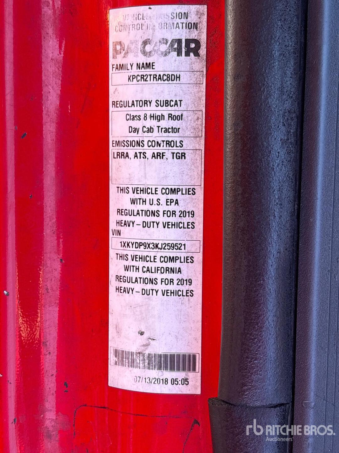 Paccar MX-13 455 hp Engine, 2018 US EPA Label, Paccar PO-16F112 12-Speed Automated, 13200 lb Front Axle, 38000 lb Rears, 51200 lb GVWR, 180 in Wheelbase, Air Suspension, 295/75R22.5