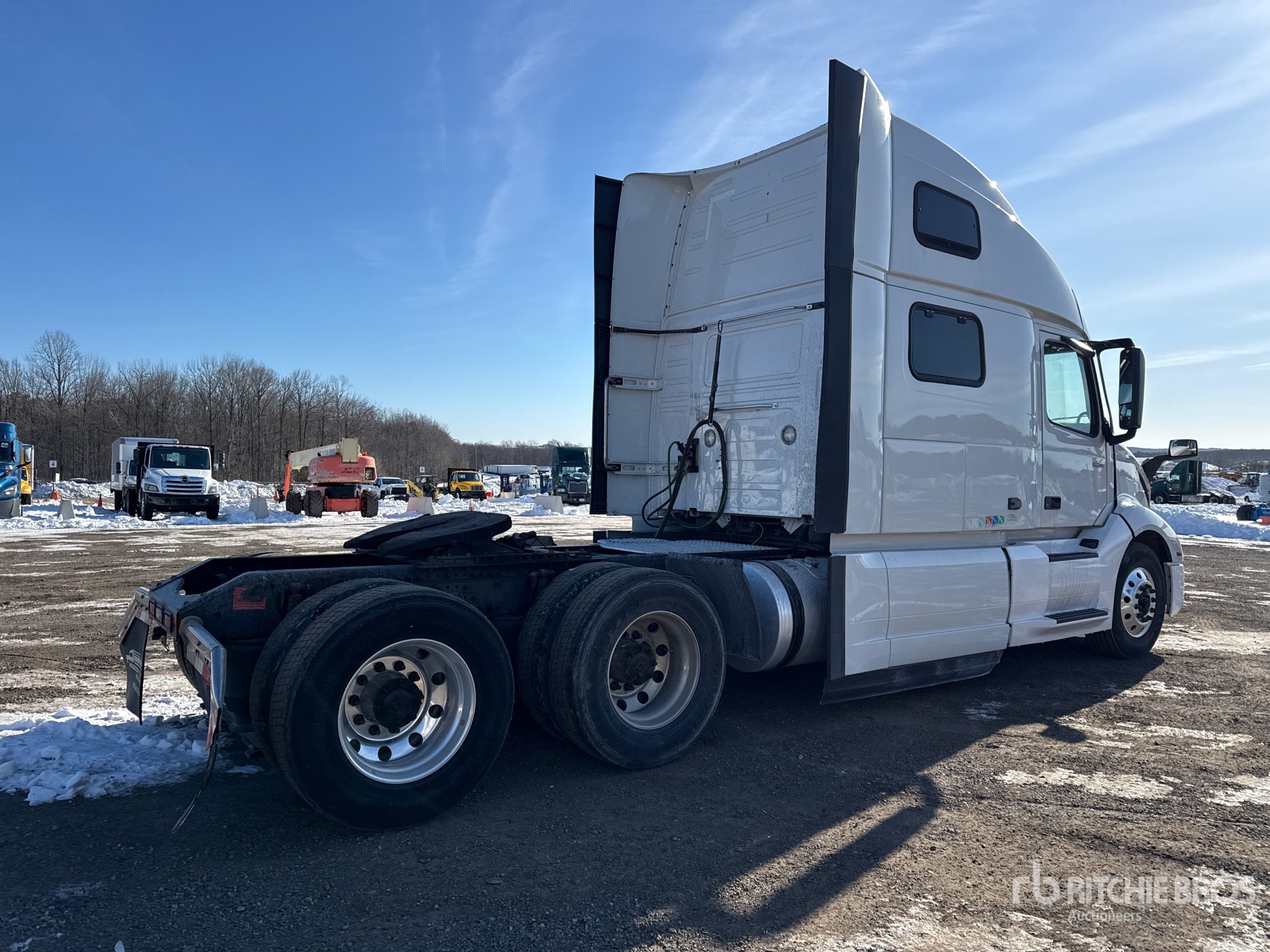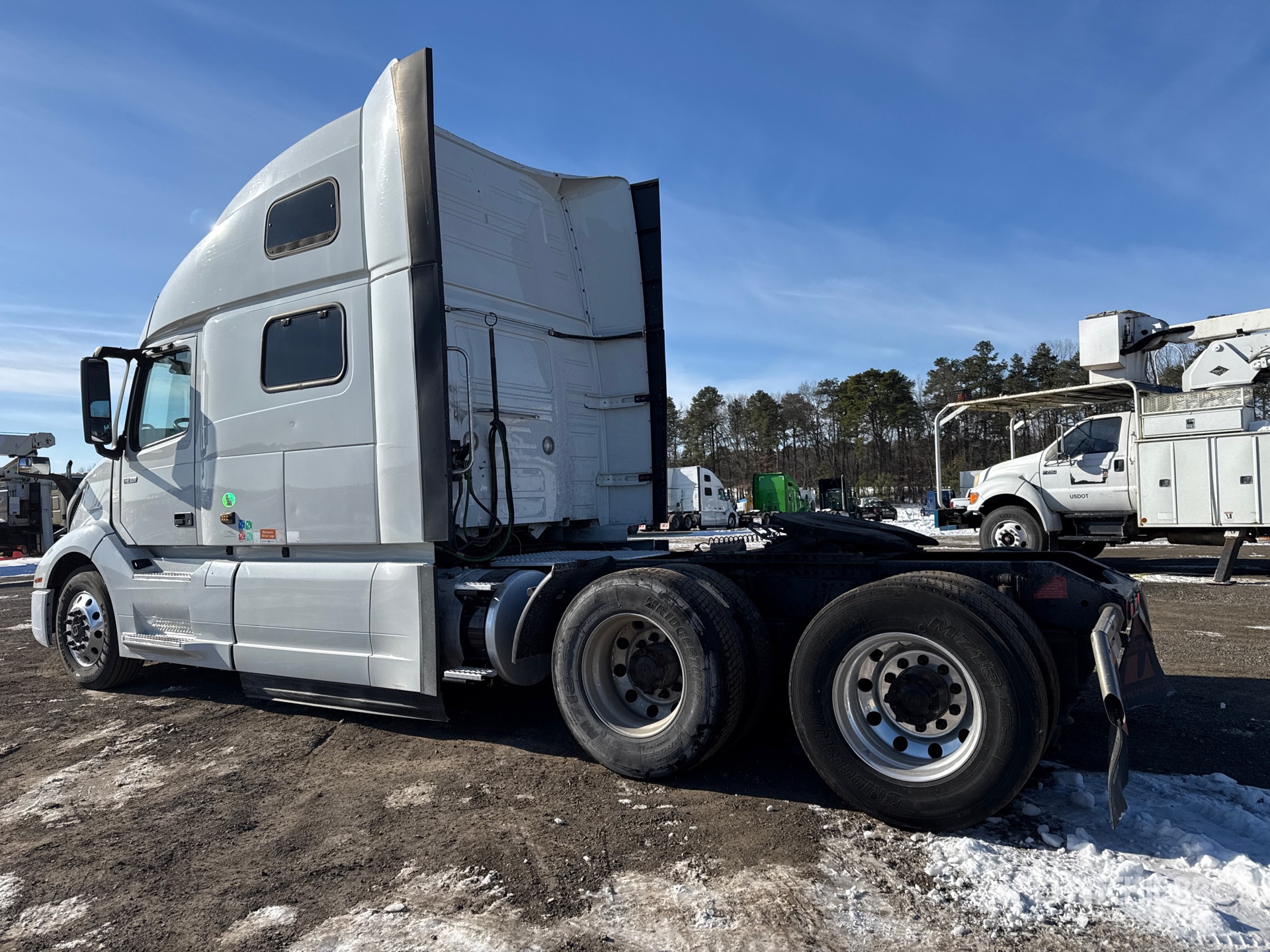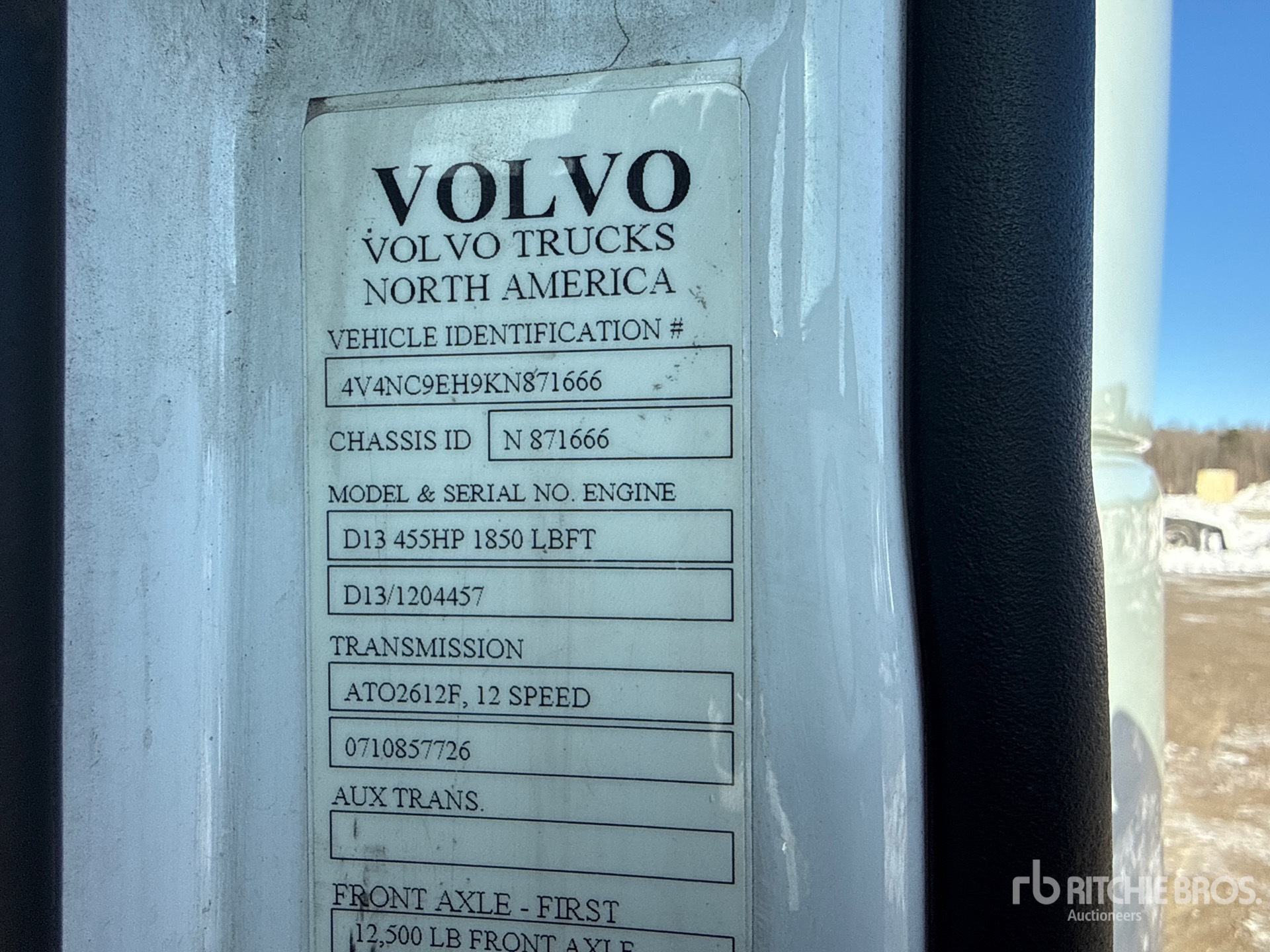Volvo D13M 455 hp Engine, 2018 US EPA Label, 26756.7 Engine hrs, Volvo ATO2612F 12-Speed Automated Transmission, 12500 lb Front Axle, 38000 lb Rears, 50350 lb GVWR, Engine Brake, Differential Lock, 70 in High Rise Sleeper Cab, Bunk Beds, 277 in Wheelbase, Air Suspension, Aluminum Outer Wheels, 295/75R22.5 Front Tires, 295/75R22.5 Rear Tires, Air Sliding 5th Wheel, Dual Fuel Tanks
