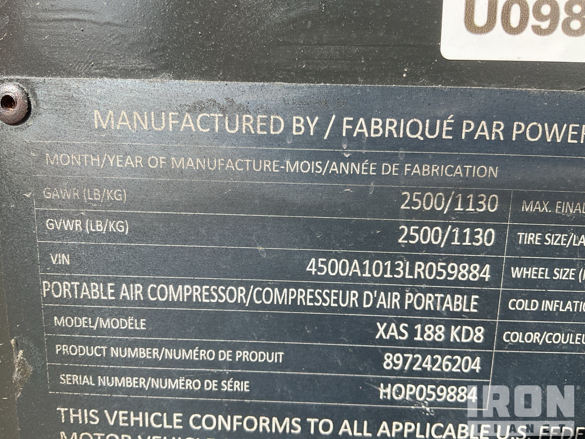 2020 Atlas Copco XAS188 KD8 188 cfm Mobile ضاغط هوائي