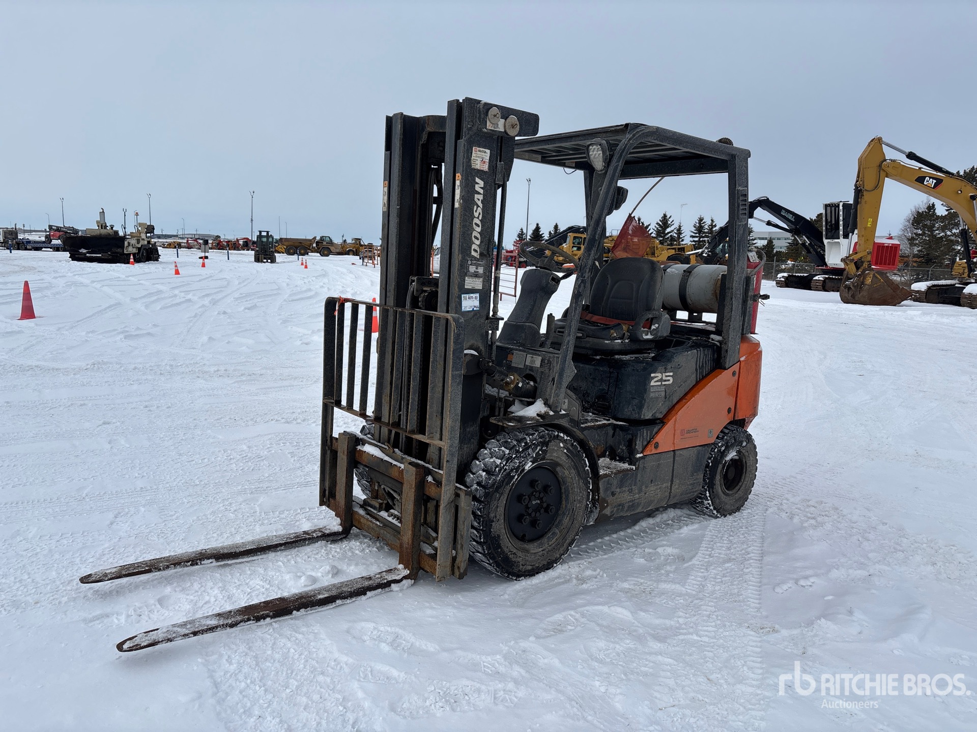 2 Stage Mast, Full Free Lift, 189 in Max Lift Height, 84 in Lowered Mast Height, 46 in Forks, Side Shift, 2019 US EPA Label, CARB Compliant, Global Component Technologies GK25 4 Cylinder 2.5 L LPG Engine
