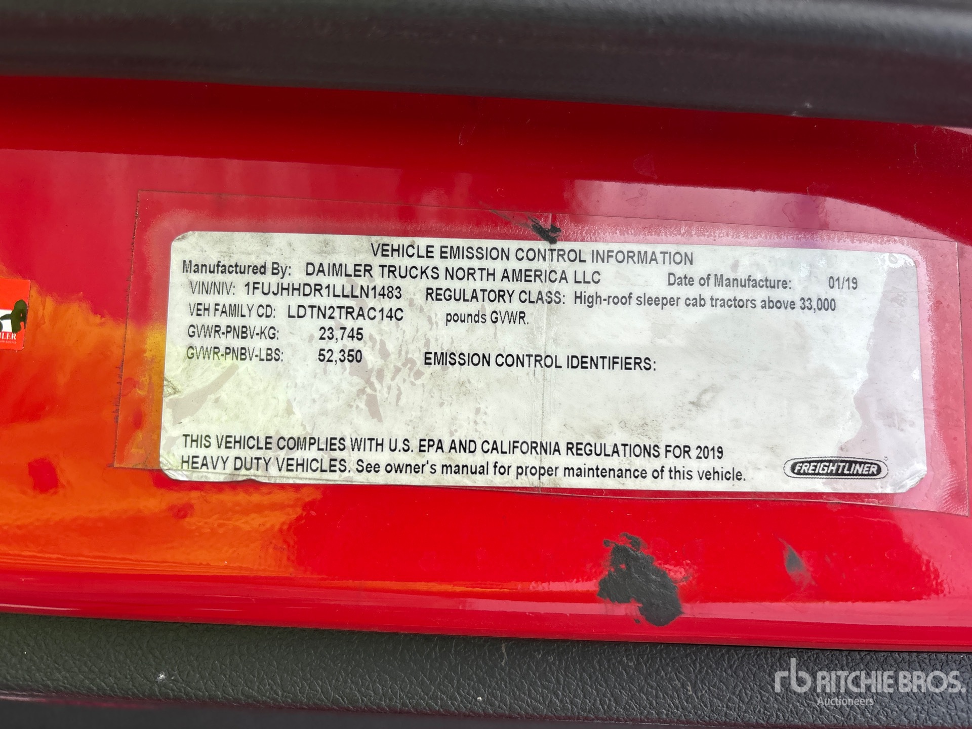 Detroit DD15 Engine, 2019 US EPA Label, Detroit DT12-1750-DH1 12-Speed Automated Transmission, 12500 lb Front Axle, 40000 lb Rears, 52500 lb GVWR, Engine Brake, 70 in High Rise Sleeper Cab, Bunk Beds, 229 in Wheelbase, Air Suspension, Aluminum Wheels, 295/75R22.5, Air Sliding 5th Wheel, Dual Fuel Tanks