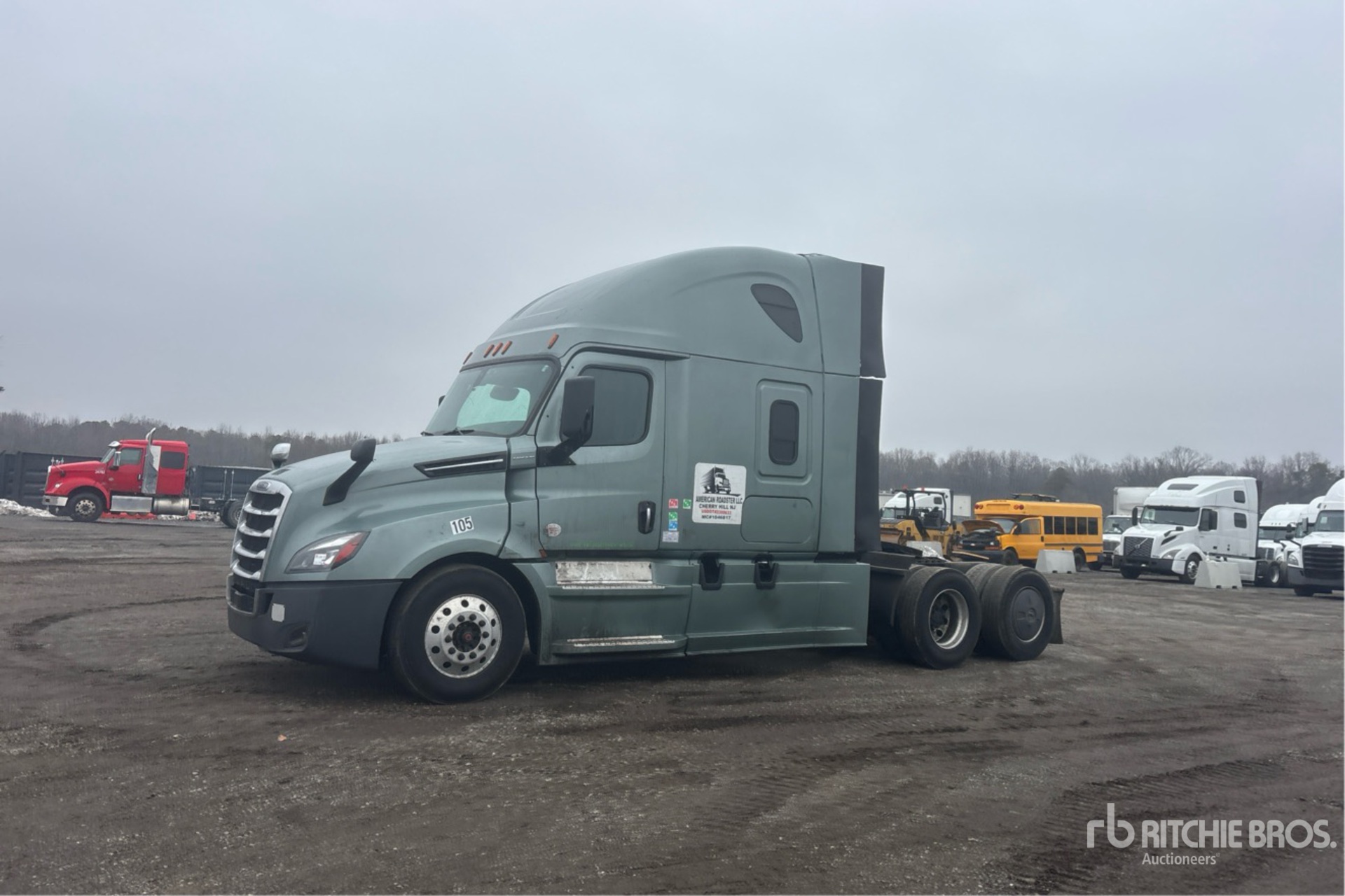 Located in Lane 53 Spot 34, Detroit DD15 400 hp Engine, 2019 US EPA Label, 21023 Engine hrs, Detroit DT12-1750-OH1 12-Speed Automated Transmission, 12500 lb Front Axle, 40000 lb Rears, 52500 lb GVWR, 60 in High Rise Sleeper Cab, Bunk Beds, Auxiliary Power Unit, 227 in Wheelbase, Air Suspension, 295/75R22.5, Air Sliding 5th Wheel, Dual Fuel Tanks