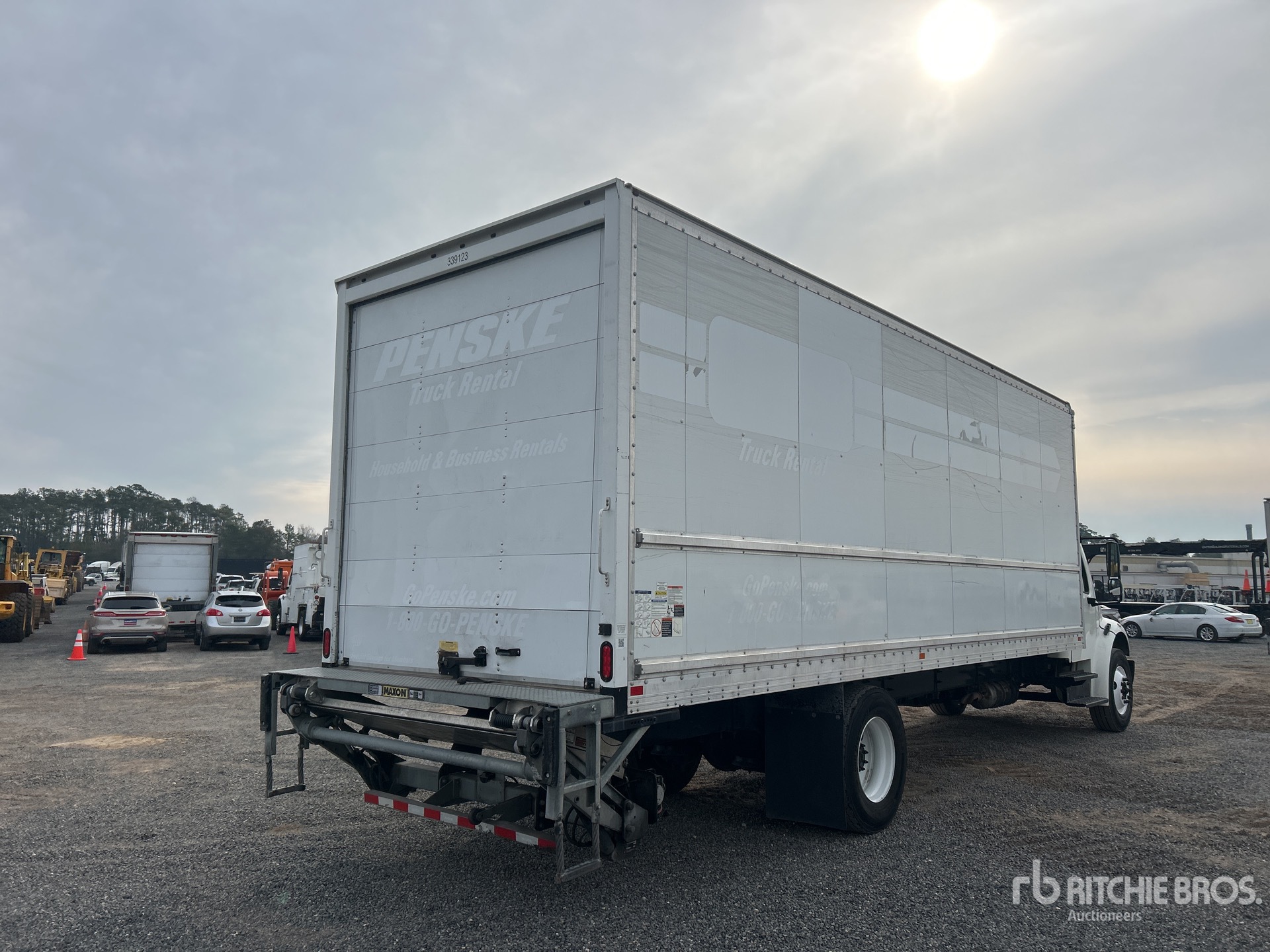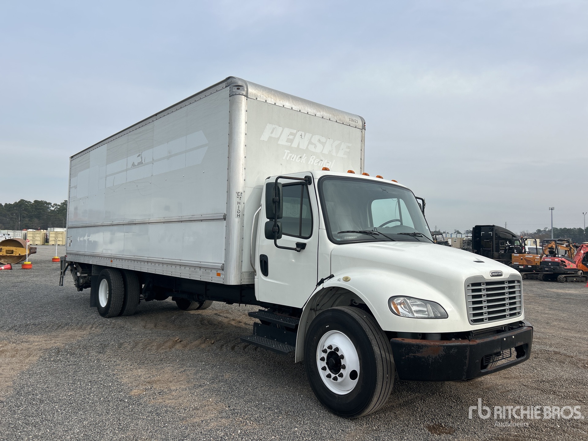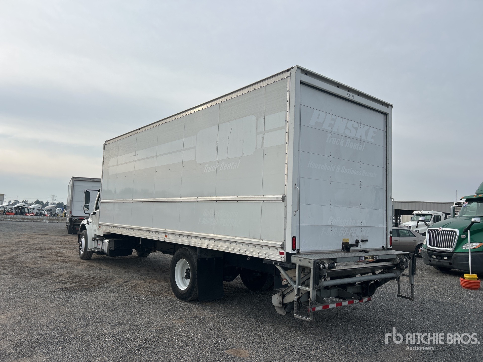 Cummins B6.7 6 Cylinder 6.7 L Diesel 220 hp Engine, Requires Diesel Exhaust Fluid, 3365 Engine hrs, Eaton Fuller EDCO-6F107A Automatic Transmission, 10000 lb Front Axle, 19000 lb Rears, Meritor MS-19-14X Drive Axles, 5.57:1 Axle Ratio, 26900 lb GVWR, 11R22.5, Airliner Air Ride Suspension, 270 in Wheelbase, AMH 26 ft x 102 in Wide x 103 in High Body, Liftgate, Professionally-Maintained-Fleet-Vehicle-PAG