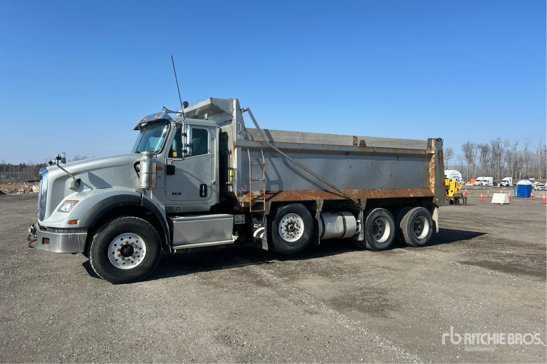 Cummins X15 6 Cylinder 15 L Diesel 500 hp Engine, 2019 US EPA Label, CARB Compliant, Requires Diesel Exhaust Fluid, 9631 Engine hrs, Engine Brake, Eaton Fuller 18-Speed Manual Transmission, Double Differential Locks, 20000 lb Front Axle, 46000 lb Rears, 80000 lb GVWR, Air Ride Cab, Aluminum Wheels, 425/65R22.5 Front Tires, 11R22.5 Rear Tires, Steerable Air Lift Pusher Axle, Dual Steering Boxes, Air Ride Suspension, 256 in Wheelbase, PTO, 20 ft Long x 48 ft High Steel Body, Air Powered Roll Tarp, Pintle Hitch