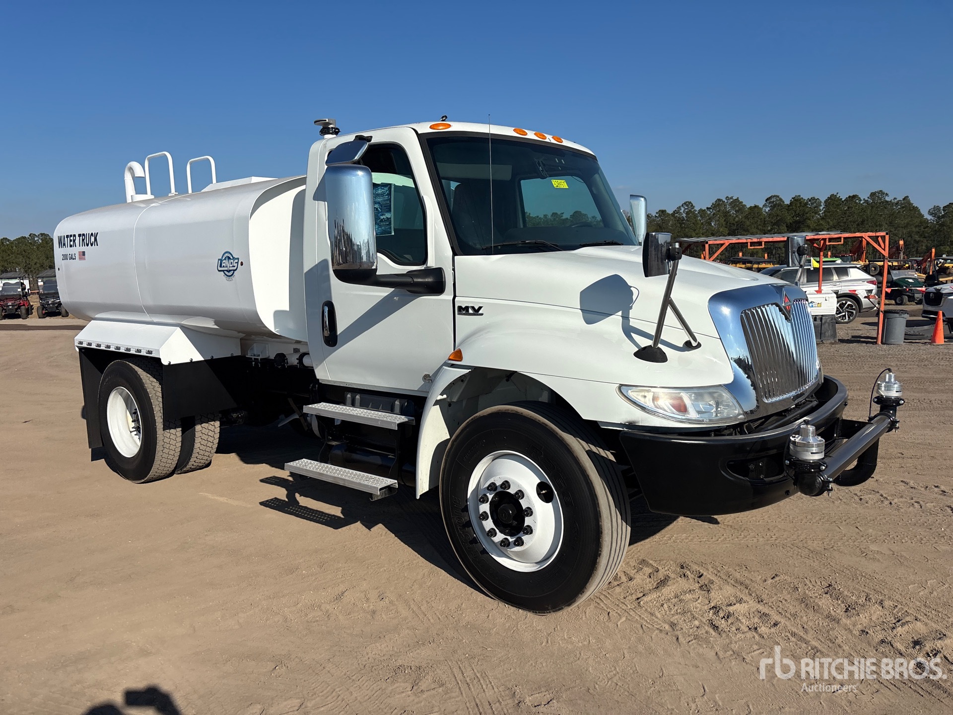 Cummins 6 Cylinder Diesel Engine, 2020 US EPA Label, Requires Diesel Exhaust Fluid, 8864 Engine hrs, Automatic Transmission, 12350 lb Front Axle, 21000 lb Rears, 33000 lb GVWR, 11R22.5, Air Ride Suspension, 132 in Wheelbase, PTO, Land's Unused powder coated 2000 gal Steel Tank, PTO Driven Pump, 6 ft, Spray Bar, Hose Reel, Front Spray, Rear Spray