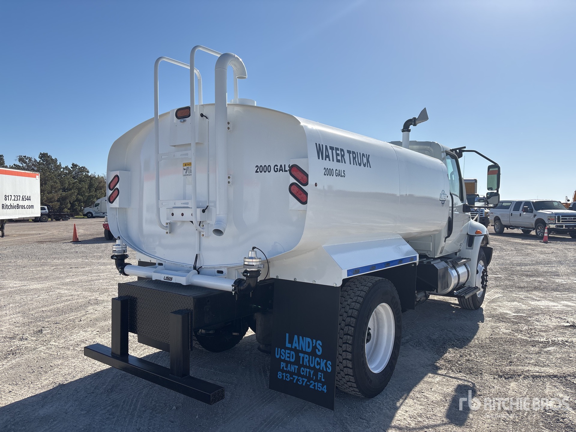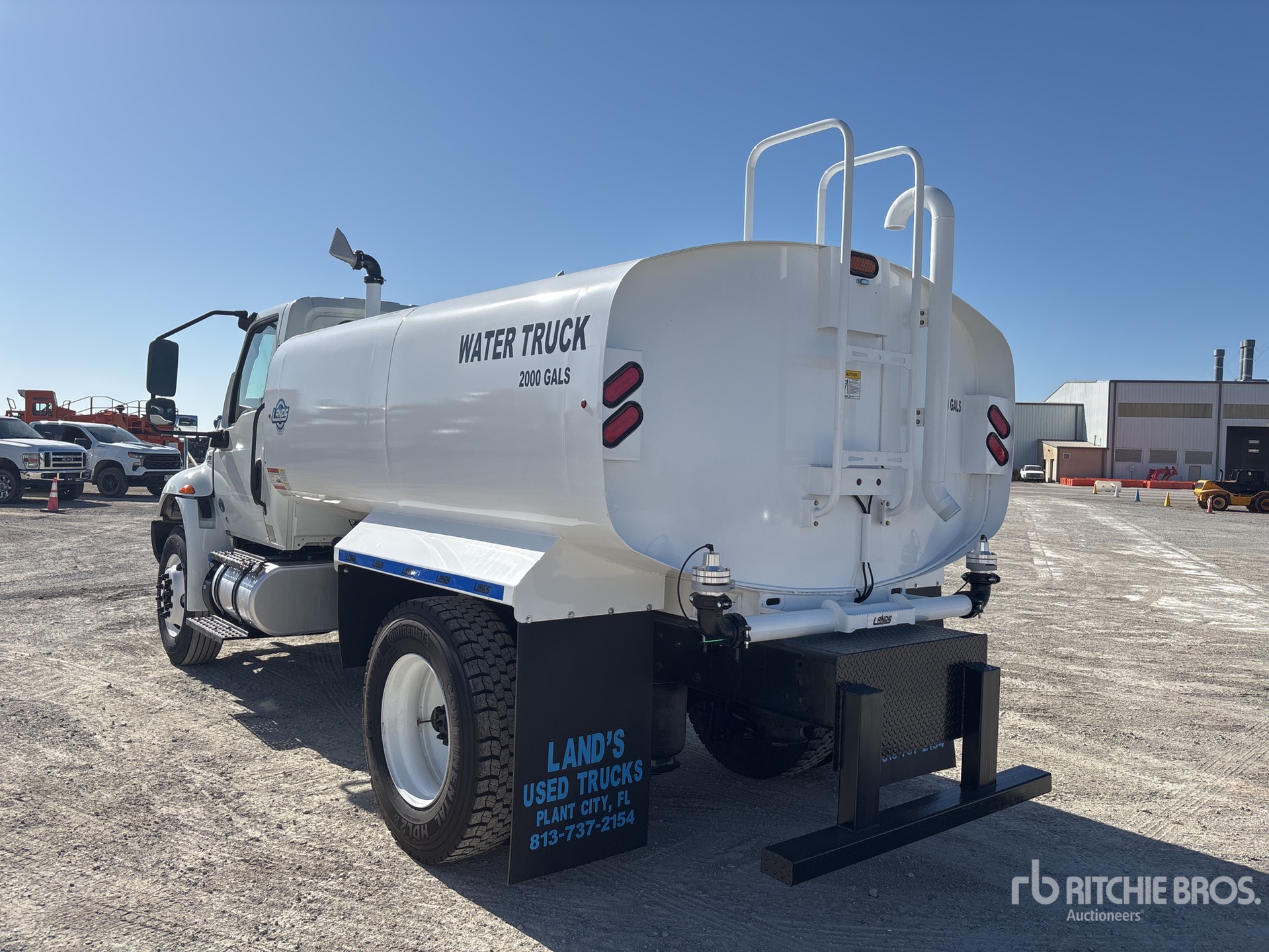 Located in Lane 10 Spot 18, Cummins B6.7 240 6 Cylinder 6.7 L Diesel 240 hp Engine, 2019 US EPA Label, Requires Diesel Exhaust Fluid, Automatic Transmission, 10000 lb Front Axle, 19000 lb Rears, 25999 lb GVWR, 295/75R22.5, Air Ride Suspension, 158 in Wheelbase, Land's Unused Powder Coated 2000 gal Steel Tank, PTO Driven Pump, Front Spray, Rear Spray, Side Spray