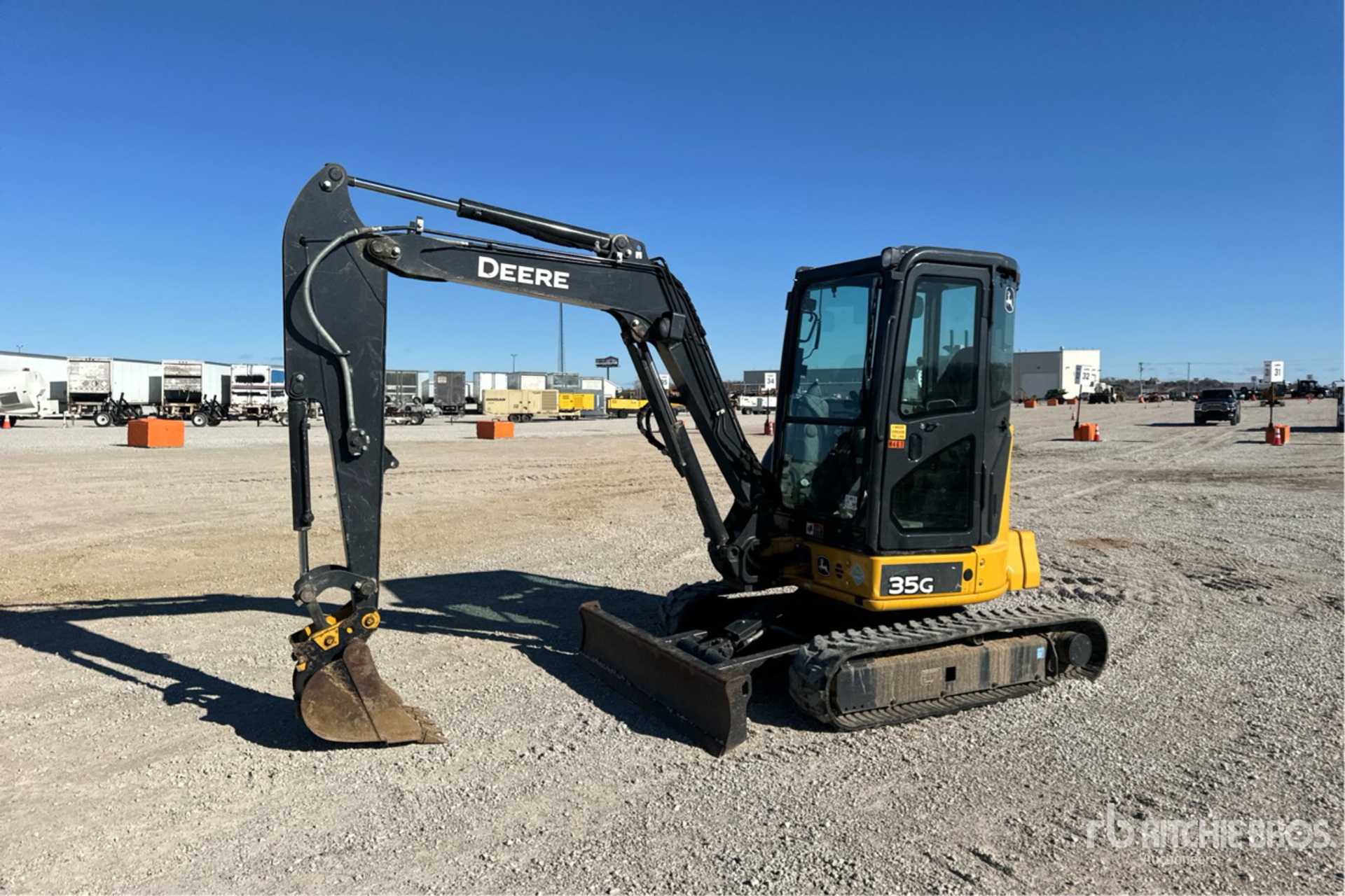 Enclosed Cab, Air Conditioner, Swing Boom, 5 ft 8 in Stick, Auxiliary Hydraulic Plumbing, Backfill Blade, 12 in Rubber Tracks, 16 in Digging Bucket, Equipment-from-Sellenriek-Construction