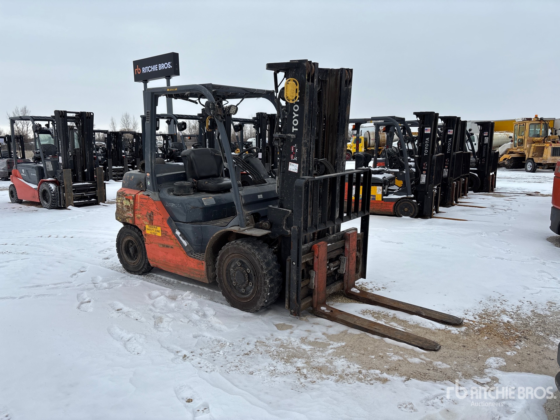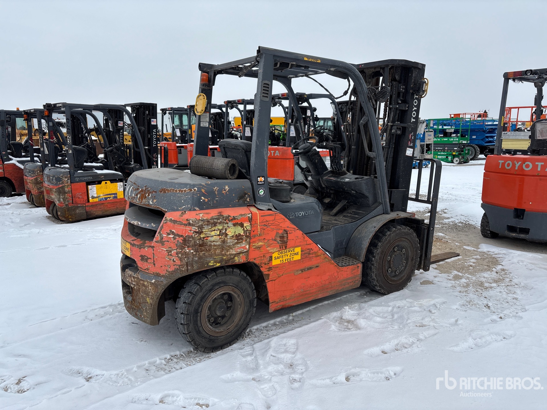 3 Stage Mast, Full Free Lift, 187 in Max Lift Height, 88 in Lowered Mast Height, 40 in Forks, Side Shift, Fork Positioner, Solid Pneumatic Tires, 2020 US EPA Label, Toyota 4 Cylinder 2.982 L Diesel Engine, Equipment-from-Herc-Rentals