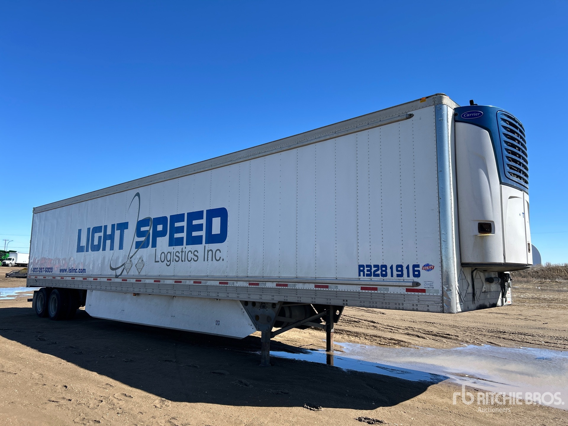 Carrier X4 7300 Refrigeration Unit, Aluminum/Steel Combination Frame, Air Ride Sliding Suspension, Disc Brakes, Side Skirts, Ducted Floor, Swing Door, 11R22.5 Tires, 65000 lb GVWR