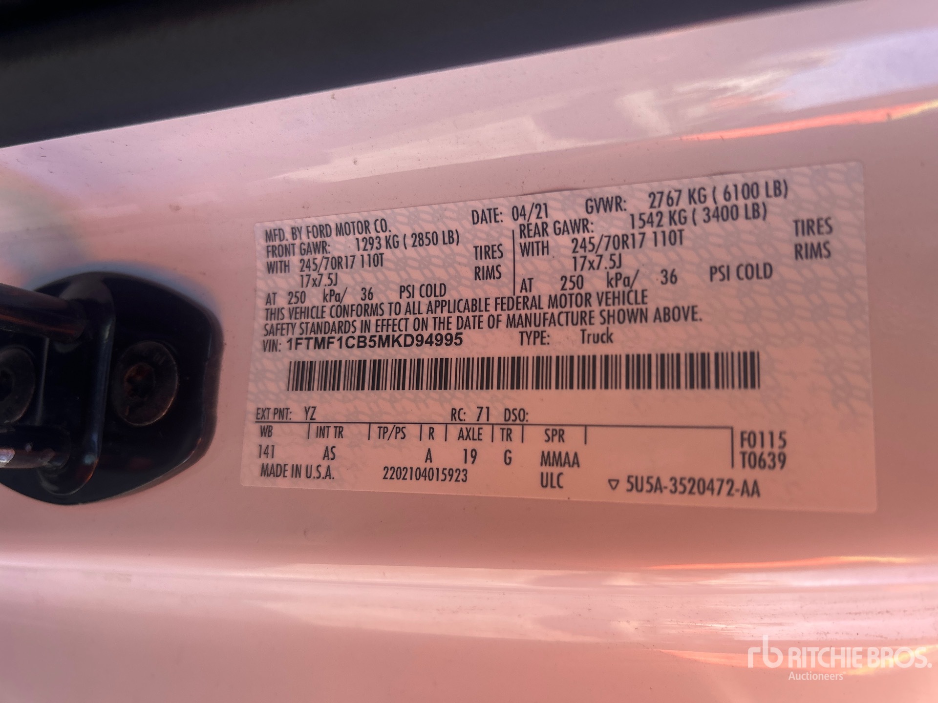 3.3 L V6 Gasoline Engine, 2021 US EPA Label, Automatic Transmission, Air Conditioner, 6100 lb GVWR, 245/70R17 Tires, 8 ft Bed