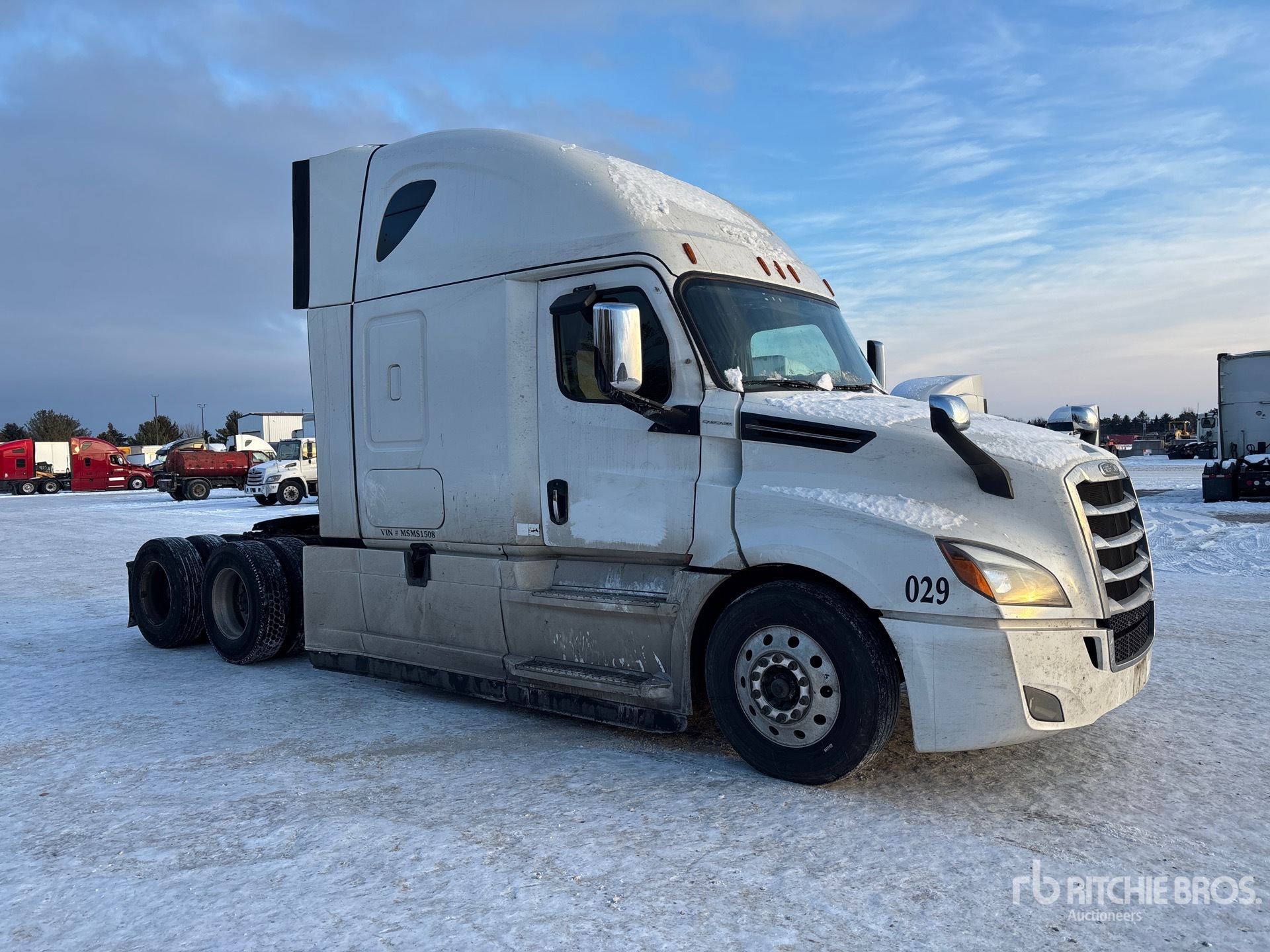Detroit DD15 505 hp Engine, 2020 US EPA Label, 19352 Engine hrs, Detroit DT12-1650-OH1 12-Speed Automated Transmission, 12350 lb Front Axle, 40000 lb Rears, 52350 lb GVWR, Engine Brake, 72 in High Rise Sleeper Cab, Bunk Beds, 229 in Wheelbase, Air Suspension, Aluminum Outer Wheels, 295/75R22.5, Air Sliding 5th Wheel, Dual Fuel Tanks