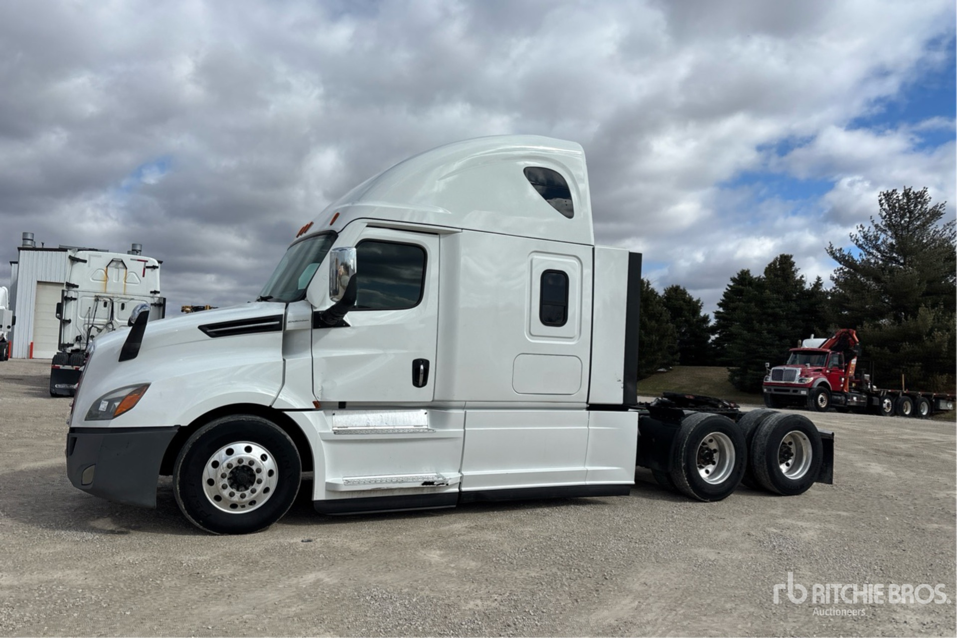 Detroit DD15 505 hp Engine, 2020 US EPA Label, 19045.51 Engine hrs, Detroit DT12-1650-OH 12-Speed Automated Transmission, 12350 lb Front Axle, 40000 lb Rears, 52350 lb GVWR, Engine Brake, 70 in High Rise Sleeper Cab, Bunk Beds, 229 in Wheelbase, Air Suspension, Aluminum Outer Wheels, 295/75R22.5, Air Sliding 5th Wheel, Dual Fuel Tanks