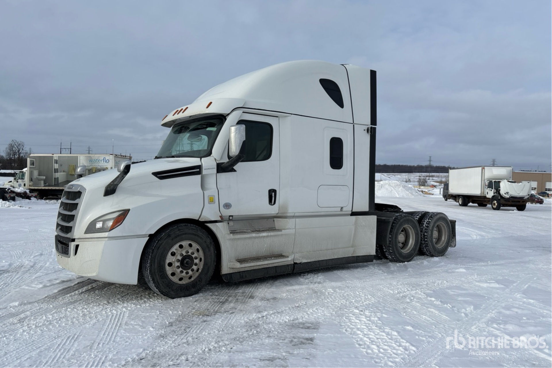 Detroit DD15 455 kW Engine, 2021 US EPA Label, 9286 Engine hrs, Detroit DT12-1750-DH1 12-Speed Automated Transmission, 13220 lb Front Axle, 40000 lb Rears, 53220 lb GVWR, 70 in High Rise Sleeper Cab, 225 in Wheelbase, Air Suspension, Aluminum Wheels, 11R22.5, Air Sliding 5th Wheel, Dual Fuel Tanks