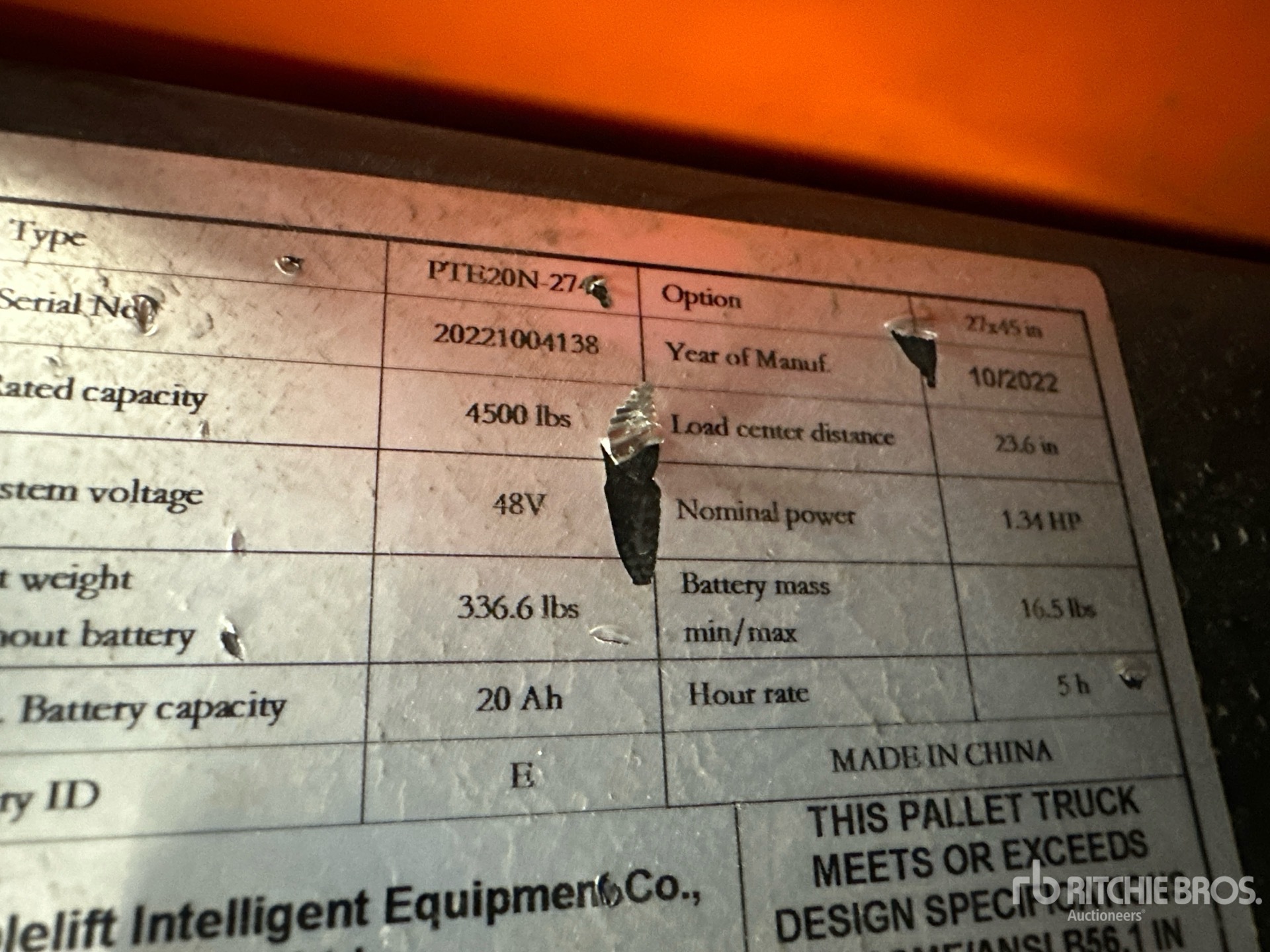 2022 Noblelift Edge PTE20N-274 4500 lb Electric رافعة الباليت