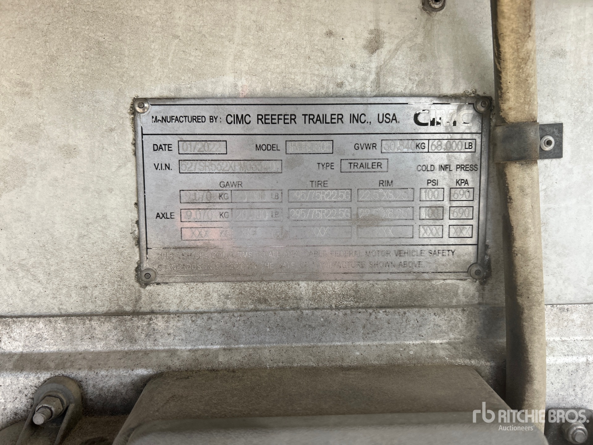 2022 Thermo King Refrigeration Unit, Air Ride Sliding Suspension, Side Skirts, Ducted Floor, Swing Door, 295/75R22.5 Tires 68000 lb GVWR