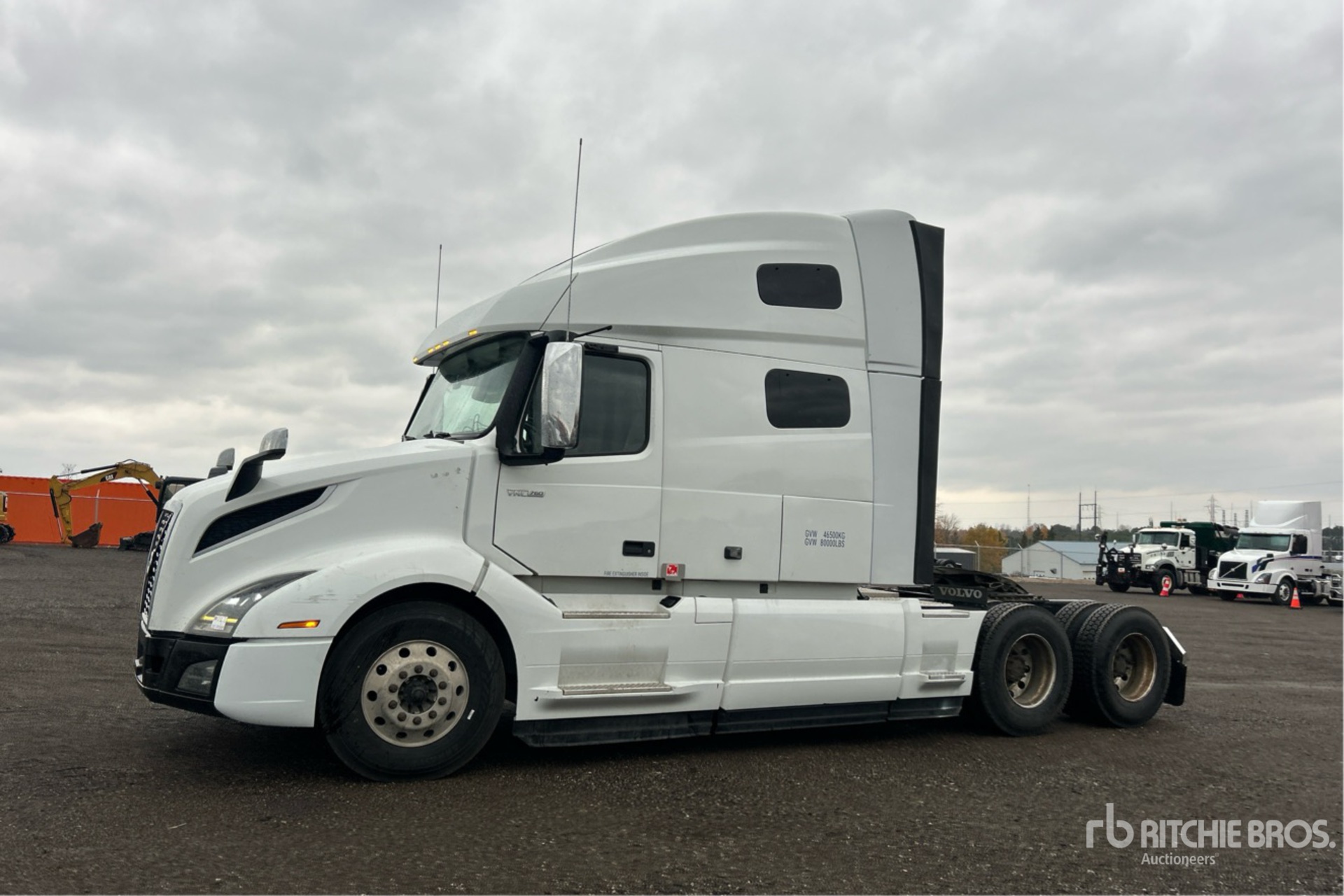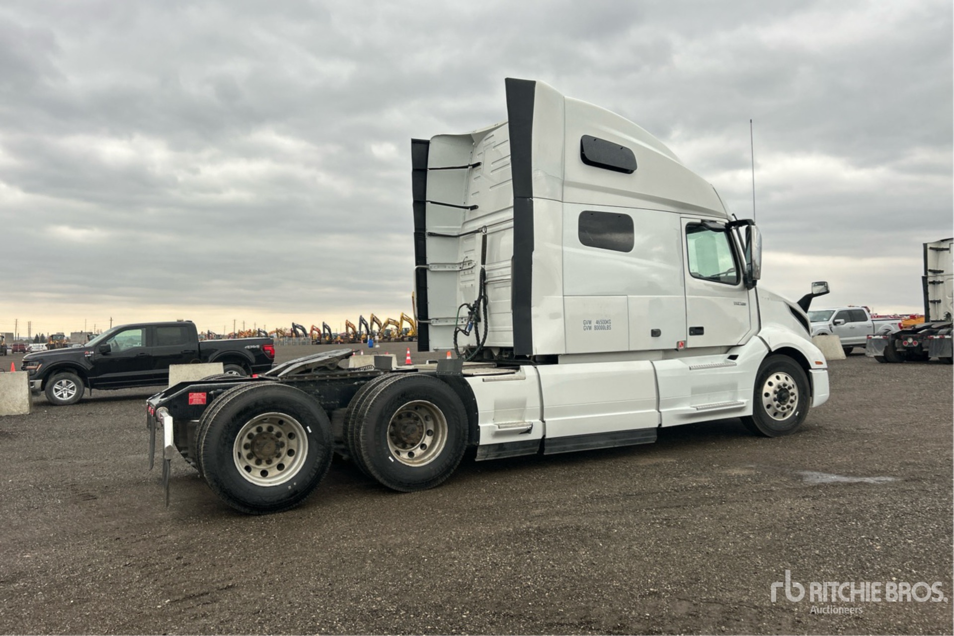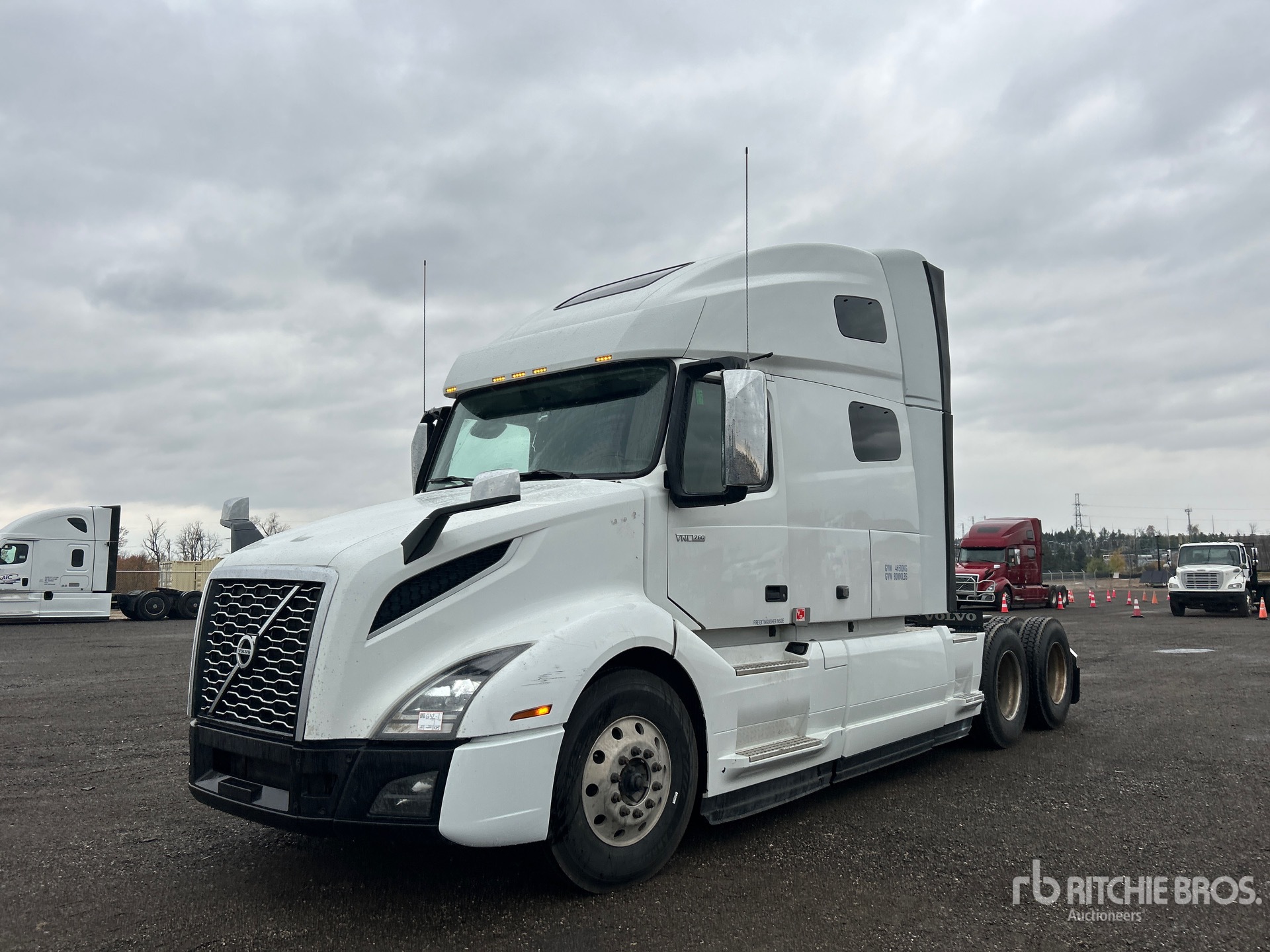 Located in Lane 9 Spot 54, Volvo D13N 455 hp Engine, 2022 US EPA Label, 14600 Engine hrs, Volvo AT2612F 12-Speed Automated Transmission, 13200 lb Front Axle, 40000 lb Rears, 53200 lb GVWR, Engine Brake, Differential Lock, 77 in High Rise Sleeper Cab, Bunk Beds, 222 in Wheelbase, Air Suspension, Aluminum Wheels, 11R22.5, Air Sliding 5th Wheel, Dual Fuel Tanks