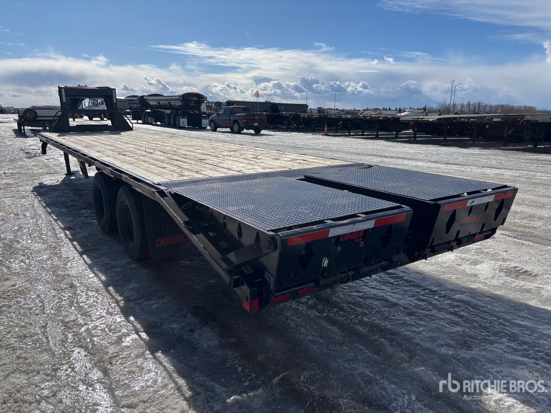 Spring Suspension, Electric Brakes, 27 ft Main Deck, 5 ft Fixed Dovetail, 102 in Overall Deck Width, Deck Over Tires, Spring Assisted Ramps, Wood Flooring, 235/85R16 Tires, 20000 lb GVWR