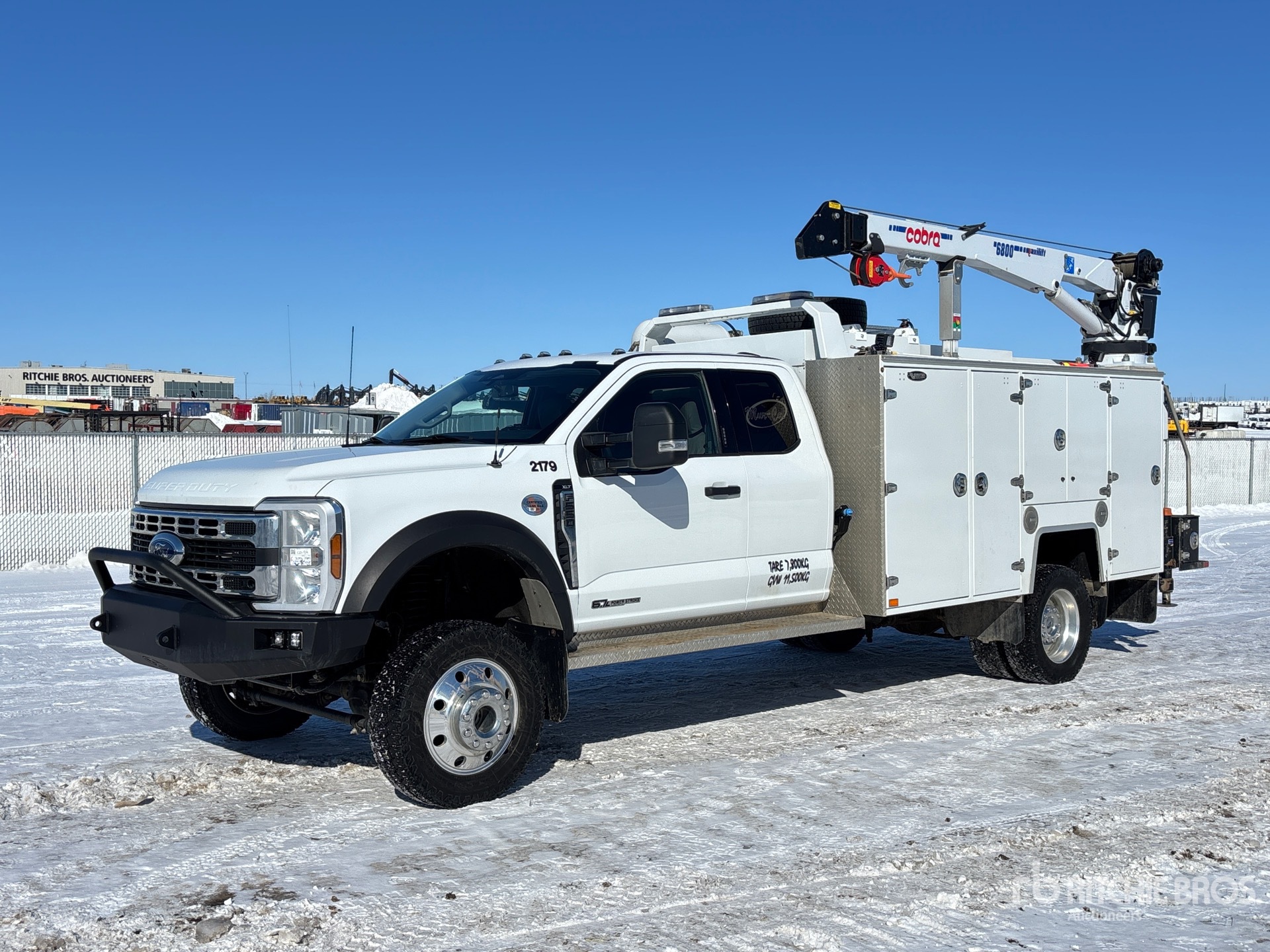 6.7 L Diesel Engine, 2023 US EPA Label, Requires Diesel Exhaust Fluid, Engine Coolant Heater, Positive Air Shutoff, Eberspacher Engine Coolant Heater, 2608 Engine hrs, Exhaust Brake, Automatic Transmission, 6500 lb Front Axle, 14706 lb Rears, 19500 lb GVWR, Brutus 11 ft 6 in Body, Hydraulic Stabilizers, Cobra 6800 Crane, Wireless Remote Control, VMAC 70 cfm Air Compressor, Air Hose Reel, Lincoln Ranger 330MPX 10 kW 330 A Gasoline Welder, Graco Used Oil Recovery, Fabtech Lift Kit, Complete-Retirement-Dispersal-for-Mur-Cal-Services-Ltd
