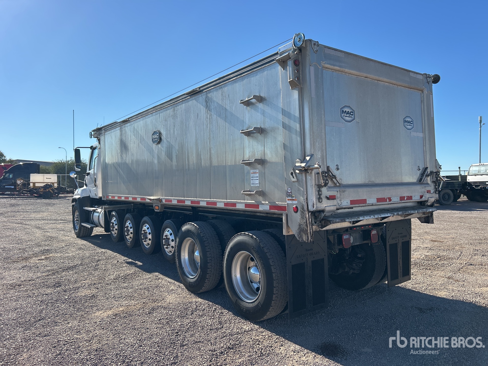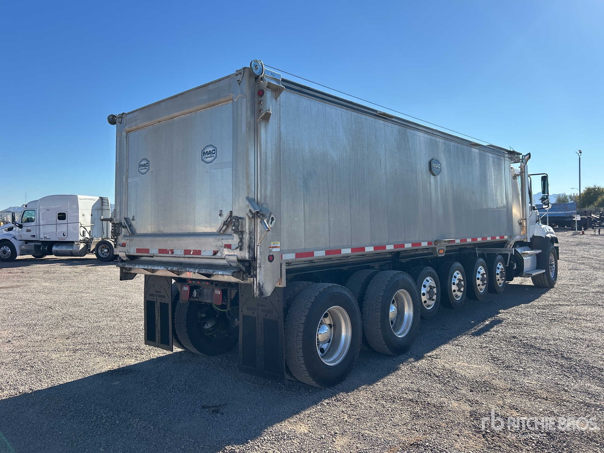 Located in Lane 17 Spot 14, Detroit DD13 6 Cylinder 12.8 L Diesel 450 hp Engine, 2023 US EPA Label, Requires Diesel Exhaust Fluid, 3449 Engine hrs, Engine Brake, Allison 4500 6-Speed Automatic Transmission, Double Differential Locks, 20000 lb Front Axle, 46000 lb Rears, Meritor RT-46-160P Drive Axles, 4.30:1 Axle Ratio, 84000 lb GVWR, Air Ride Cab, Aluminum Wheels, 425/65R22.5 Front Tires, 11R22.5 Rear Tires, 4 Steerable Air Lift Pusher Axle, Dual Steering Boxes, Double Frame, Hendrickson Haulmaax Rubber over Walking Beam Suspension, 310 in Wheelbase, PTO, MAC 23 ft Long x 64 in High Aluminium Body, 23 cyd, Capacity, Electric Roll Tarp, Approximately 30,000 lb Tare Empty Weight, 25 ton Capacity, 23 ft MAC Aluminum MVP Bed, 64 in Sides with 0.5 in Asphalt Liners, Aeroforce Electric Asphalt & Aggregate Tarp System COMPLETE BASIC ENGINE WARRANTY THROUGH FEBRUARY 2026 - UNLIMITED MILES, ENGINE MAJOR COMPONENTS WARRANTY THROUGH FEBRUARY 2029 OR 500,000 MILES, EW4 LEVEL - DETROIT EXTENDED EMISSIONS SYSTEM WARRANTY THROUGH FEBRUARY 2031 OR 250,000 MILES, PLEASE SEE ADDITIONAL WARRANTY LEVELS IN ATTACHED PDF