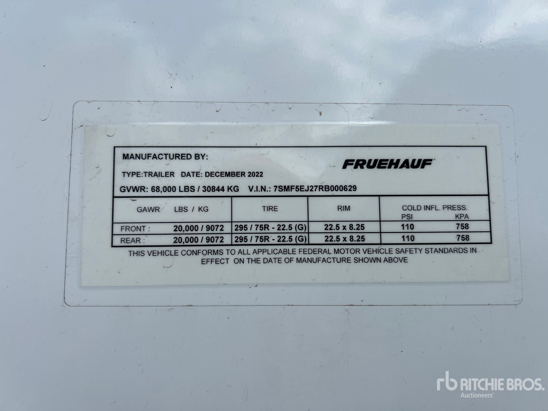 Located in Lane 32 Spot 8, Air Ride Sliding Suspension, Hardwood Floor, Swing Door, 295/75R22.5 Tires 68000 lb GVWR