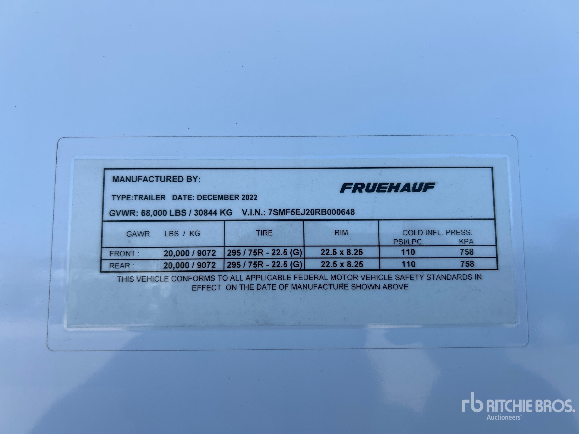 Located in Lane 31 Spot 12, Air Ride Sliding Suspension, Hardwood Floor, Swing Door, 295/75R22.5 Tires 68000 lb GVWR