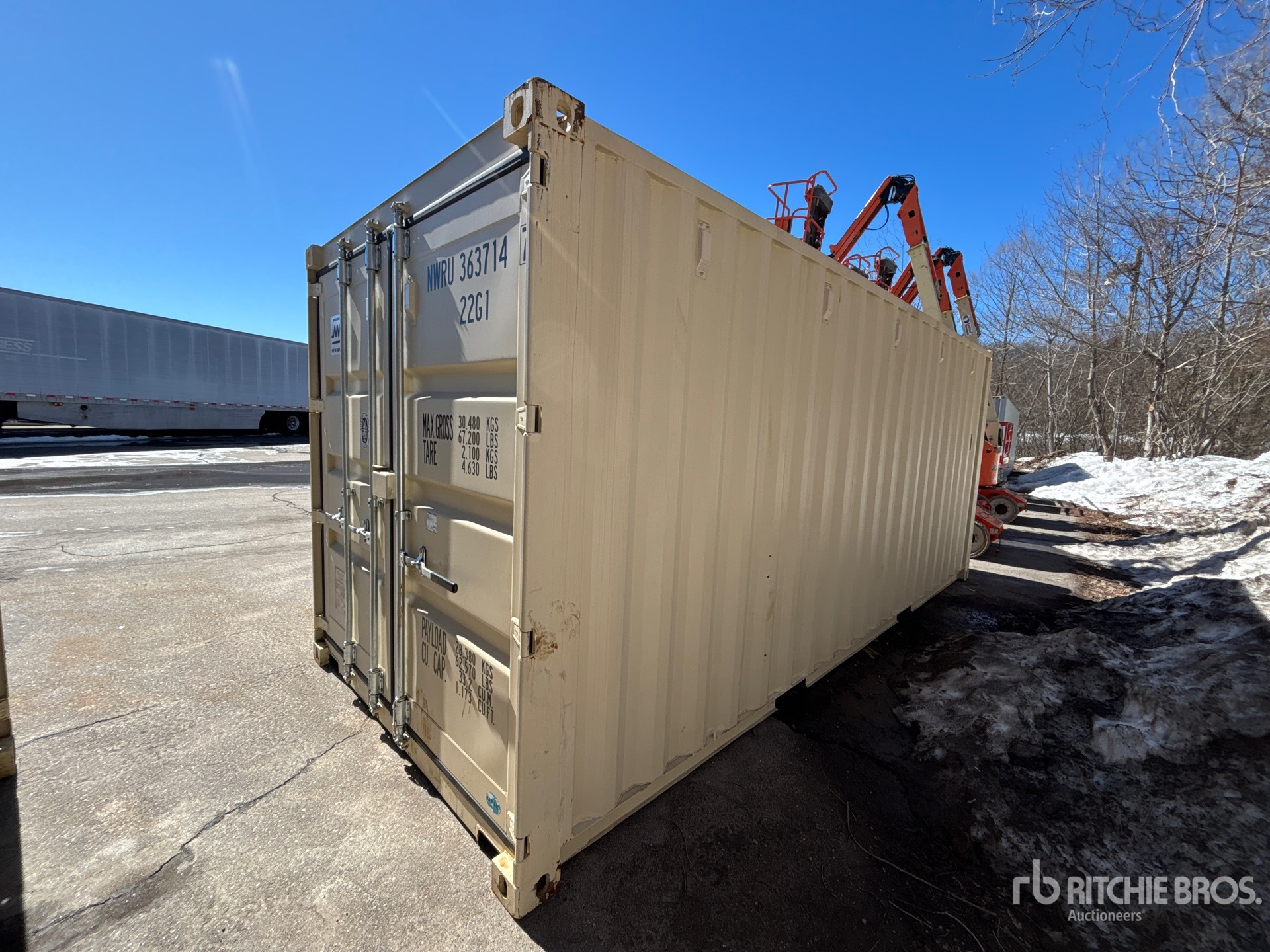 القياسات مُقدمة بشكل تقريبي فقط. قد تختلف الأبعاد الفعلية للحمولة بناءً على ارتفاع الشاحنة/المقطورة وتكوين/وضع الآلة المُحمَّلة. تقع على عاتق المشتري مسؤولية قياس جميع الأحمال قبل مغادرة موقع المزاد الخاص بنا لضمان أن الحمولة آمنة للنقل. يجب أن يتحقق المشتري من جميع القياسات. لا تعتمد على هذه القياسات لأغراض النقل.
