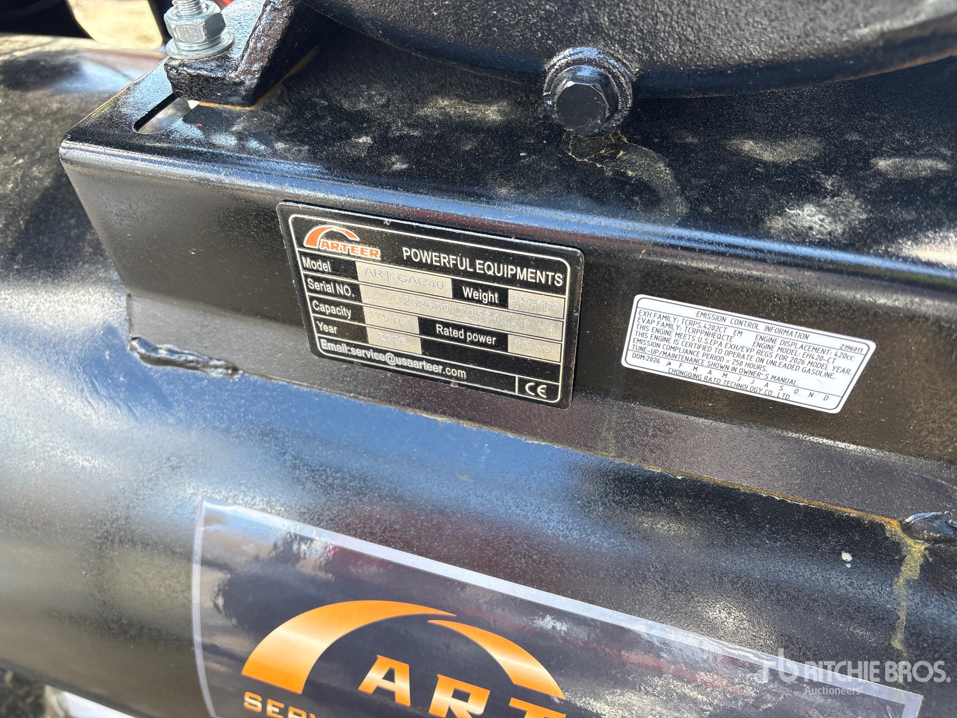 175 psi Working Pressure, 1 Cylinder 15 hp Gasoline Engine