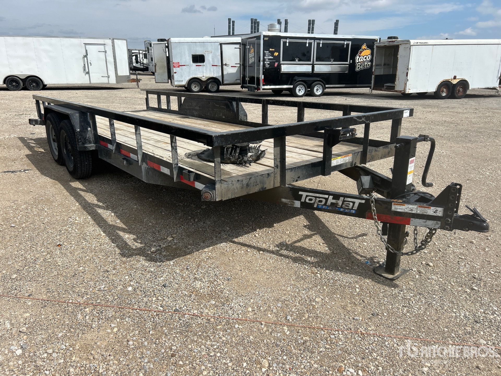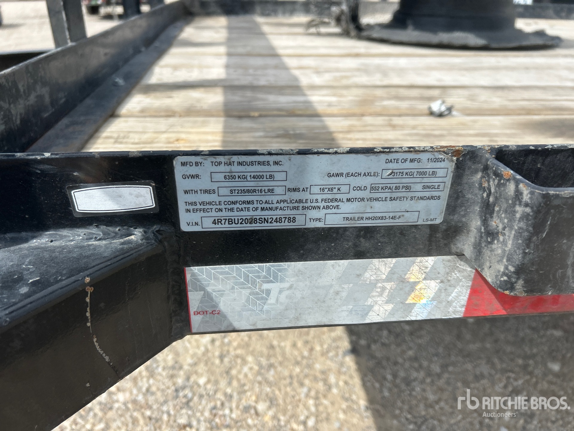 Ball Hitch, Spring Suspension, 82 in Deck Width, 84 in Overall Width, Wood Flooring, 235/80R16 Tires, 14000 lb GVWR, Ramps