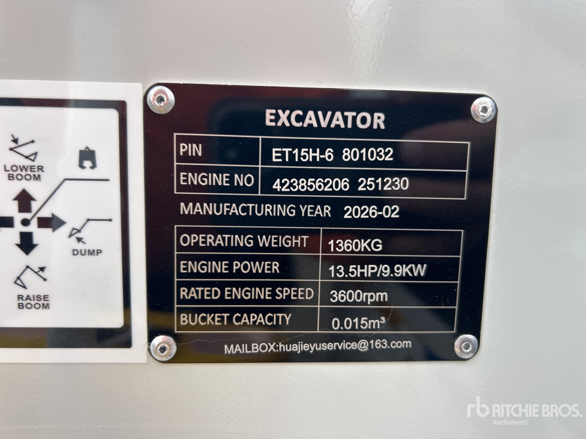 850 mm Stick, Auxiliary Hydraulic Plumbing, Backfill Blade, 180 mm Rubber Tracks, 400 mm Digging Bucket, Manual Thumb