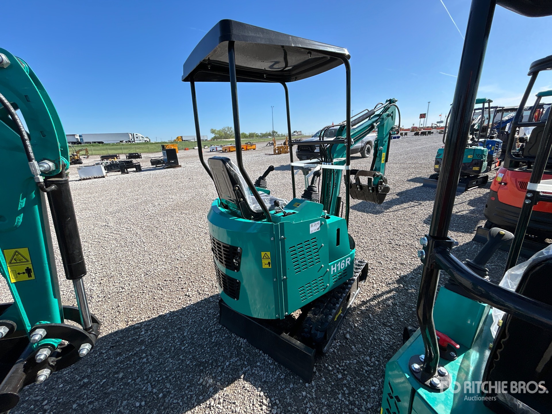 2 ft 8 in Stick, Auxiliary Hydraulic Plumbing, Backfill Blade, 7 in Rubber Tracks, 16 in Digging Bucket, Manual Thumb