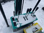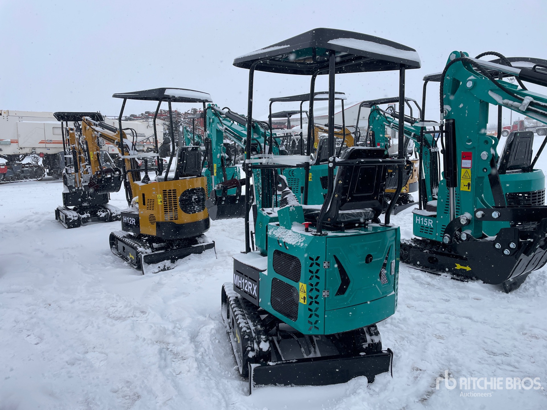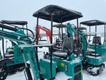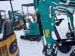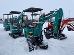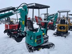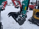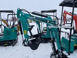 2025 US EPA Label, 2 ft 7 in Stick, Auxiliary Hydraulic Plumbing, Backfill Blade, 7 in Rubber Tracks, 16 in Digging Bucket, Manual Thumb, Product images displayed are stock photos. Item is new/unused.