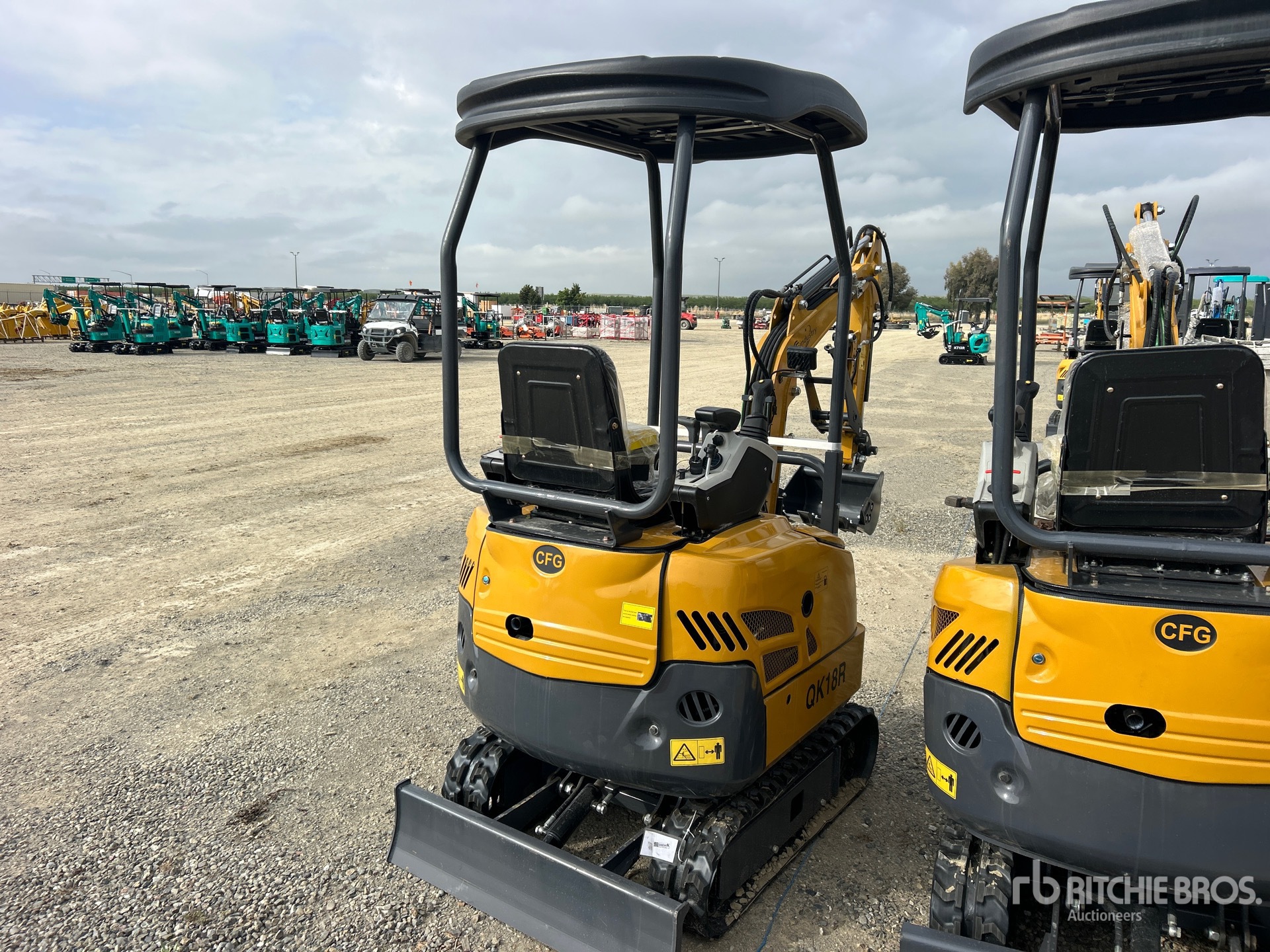 2025 US EPA Label, 2 ft 7 in Stick, Backfill Blade, 7 in Rubber Tracks, Manual Quick Coupler, 16 in Digging Bucket, Hydraulic Thumb
