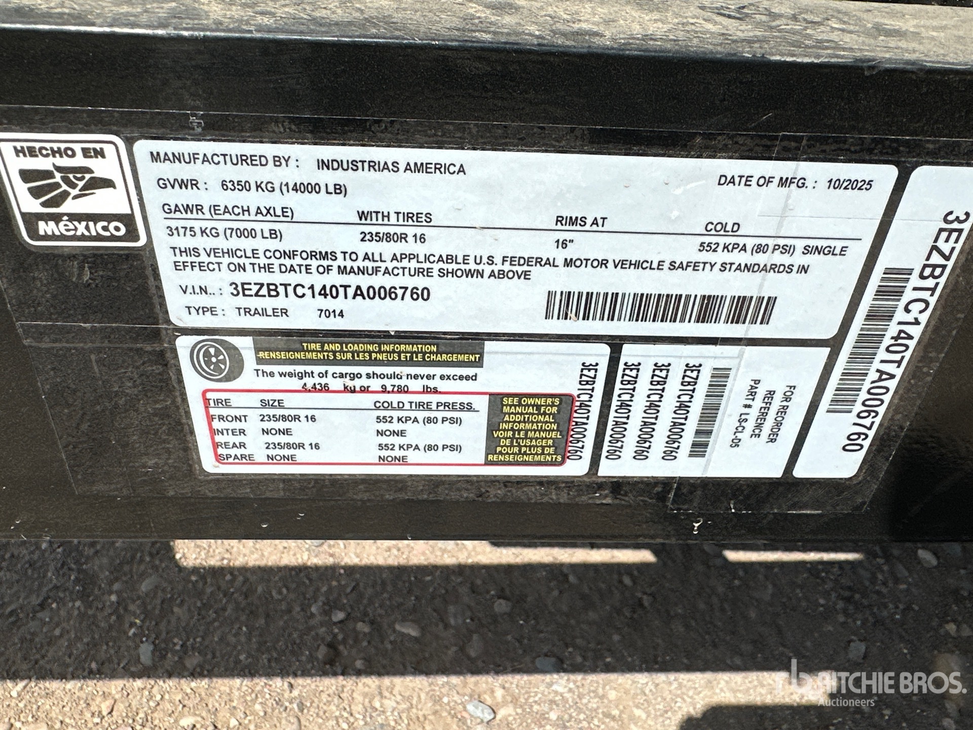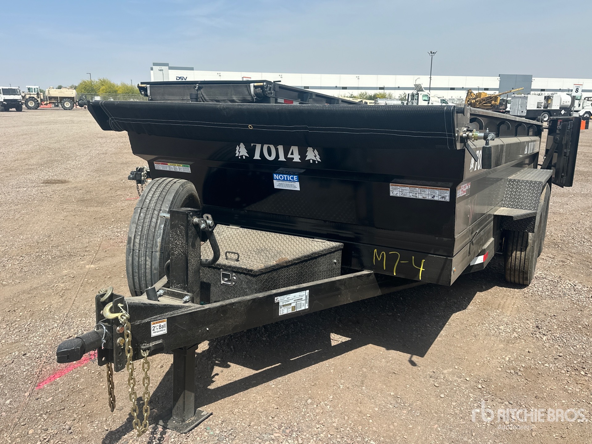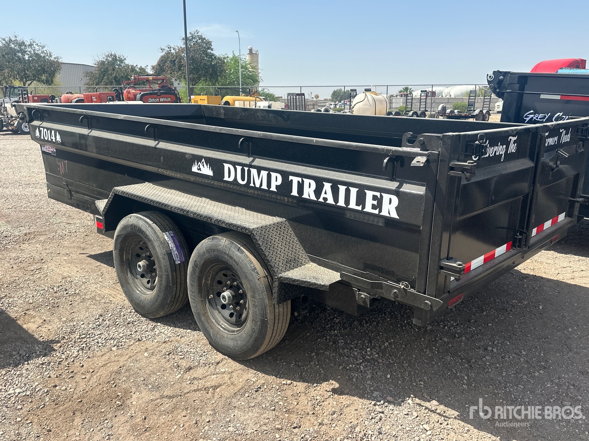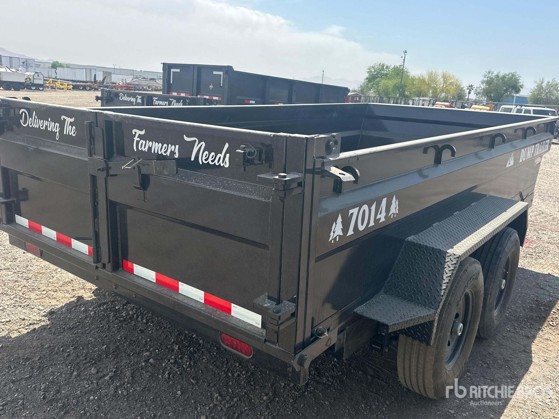 Located in Lane 7 Spot 53, Ball Hitch, Spring Suspension, Electric Brakes, 14 ft 10 in Body, 26 in Side Walls, Steel Body, Manual Roll Tarp, Swing Tailgate, 235/80R16 Tires, 14000 lb GVWR