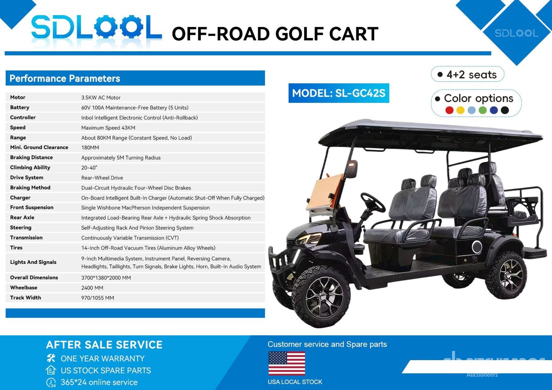 Battery Charger, 6 Passenger, Canopy, Windshield, 60 Volt, Product images displayed are stock photos. Item is new/unused.