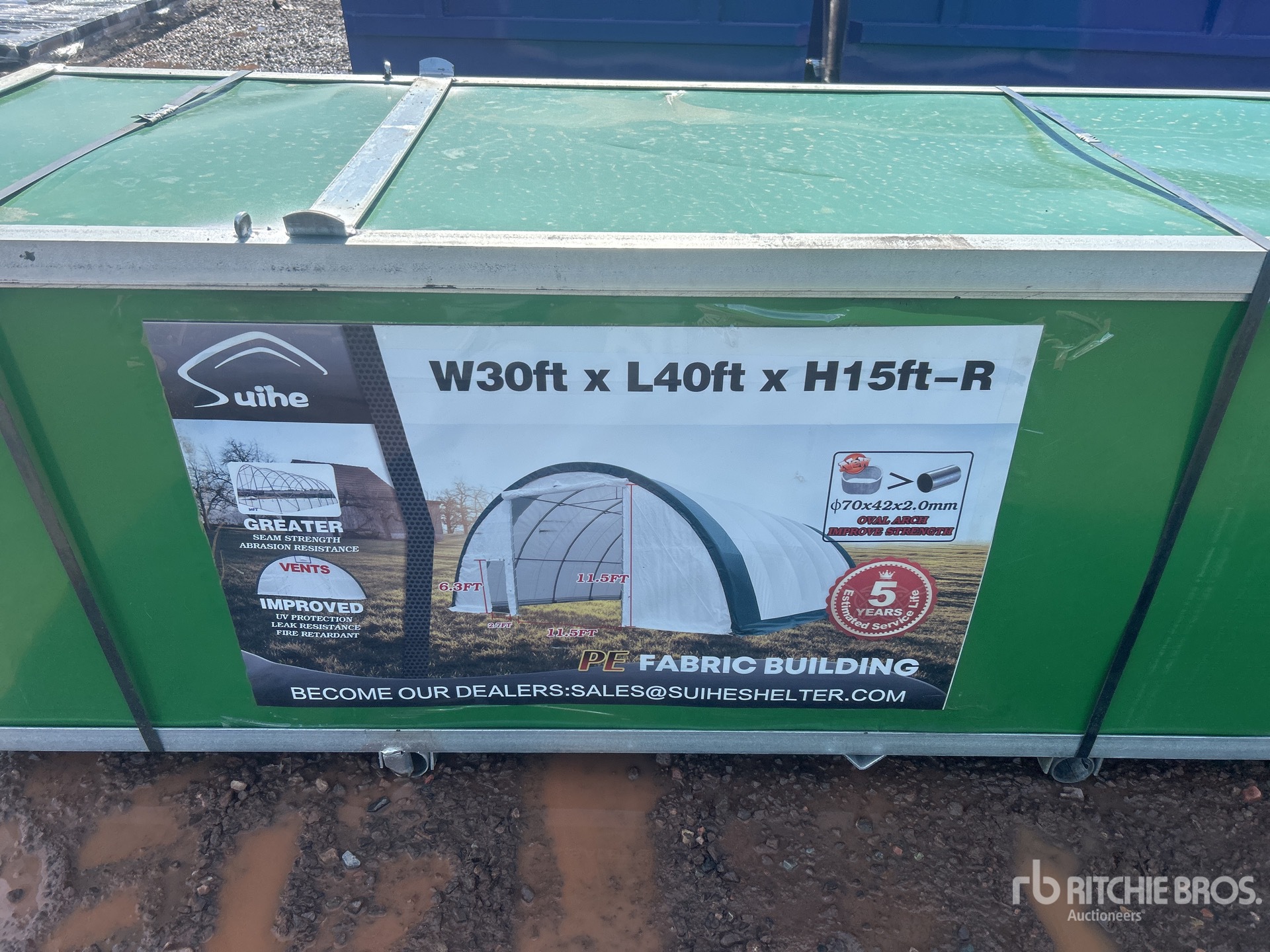 القياسات مُقدمة بشكل تقريبي فقط. قد تختلف الأبعاد الفعلية للحمولة بناءً على ارتفاع الشاحنة/المقطورة وتكوين/وضع الآلة المُحمَّلة. تقع على عاتق المشتري مسؤولية قياس جميع الأحمال قبل مغادرة موقع المزاد الخاص بنا لضمان أن الحمولة آمنة للنقل. يجب أن يتحقق المشتري من جميع القياسات. لا تعتمد على هذه القياسات لأغراض النقل.