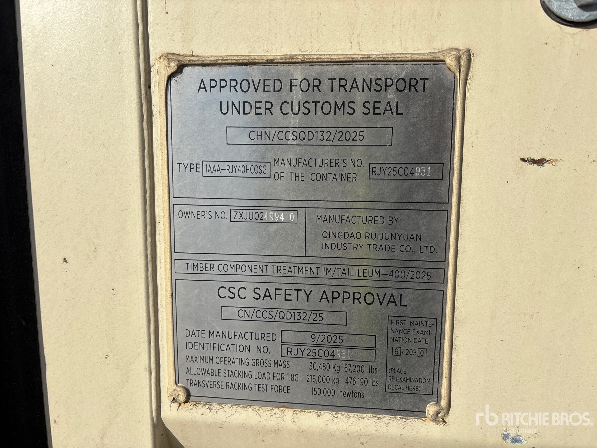 المدفوعاتالمعلومات التفصيلية حول المعدات محدودة النطاق، ولم تفحص شركة ريتشي وإخوانه للمزادات العلنية أي جوانب أو مكونات من المعدات بخلاف تلك المنصوص عليها صراحة في هذه الوثيقة. ما لم يُنص صراحة على ذلك، نحن لا نقدم أي تعهدات أو ضمانات، صريحة أو ضمنية، في ما يتعلق بالمعدات أو مكوناتها، بما في ذلك على سبيل المثال لا الحصر أي تعهدات أو ضمانات تتعلق بالتشغيل أو المطابقة أو الامتثال لأي معيار أمان أو متطلبات أي سلطة أو هيئة تنظيمية معنية، أو الملاءمة لأي غرض معين، أو قابلية التسويق. ننصحك بشدة بإجراء فحص تفصيلي خاص بك للمعدات قبل تقديم المزايدات.