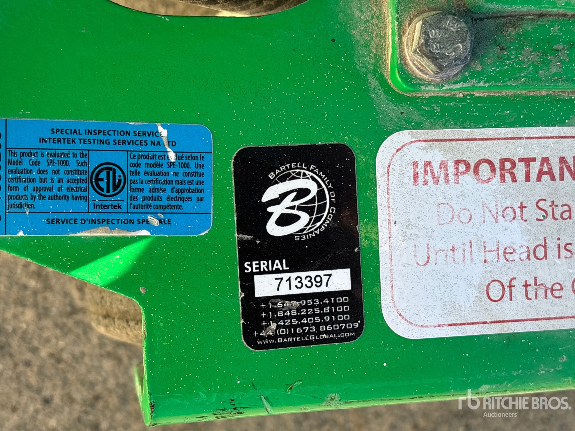 المدفوعاتالمعلومات التفصيلية حول المعدات محدودة النطاق، ولم تفحص شركة ريتشي وإخوانه للمزادات العلنية أي جوانب أو مكونات من المعدات بخلاف تلك المنصوص عليها صراحة في هذه الوثيقة. ما لم يُنص صراحة على ذلك، نحن لا نقدم أي تعهدات أو ضمانات، صريحة أو ضمنية، في ما يتعلق بالمعدات أو مكوناتها، بما في ذلك على سبيل المثال لا الحصر أي تعهدات أو ضمانات تتعلق بالتشغيل أو المطابقة أو الامتثال لأي معيار أمان أو متطلبات أي سلطة أو هيئة تنظيمية معنية، أو الملاءمة لأي غرض معين، أو قابلية التسويق. ننصحك بشدة بإجراء فحص تفصيلي خاص بك للمعدات قبل تقديم المزايدات.